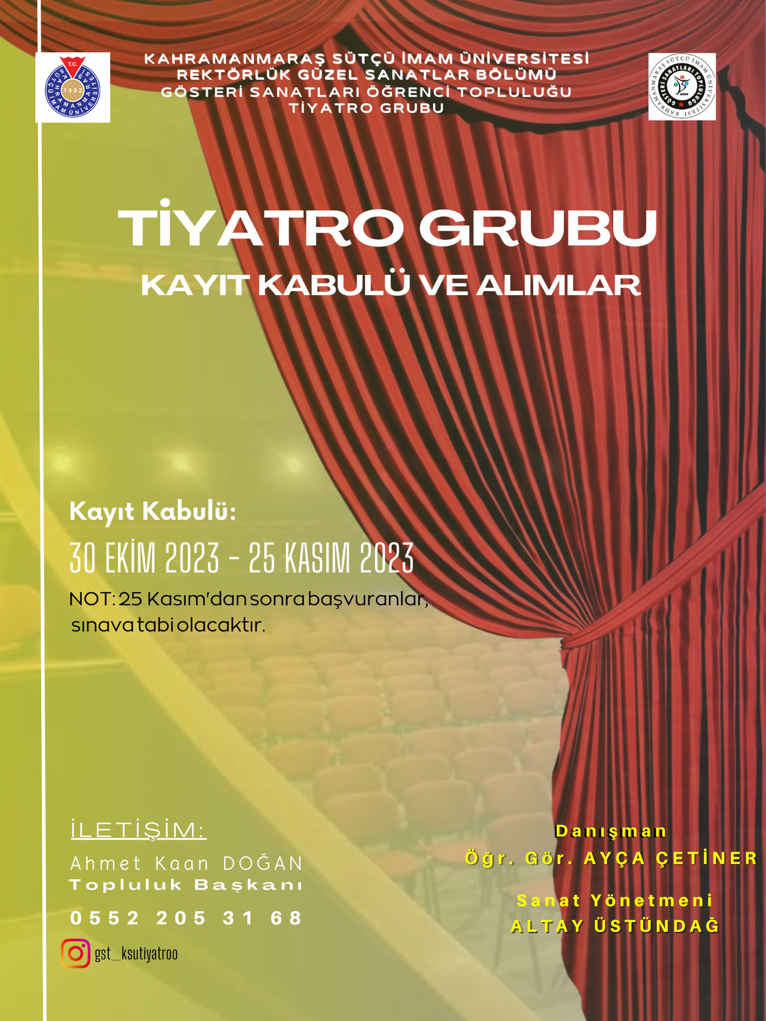 KSÜ Gösteri Sanatları Öğrenci Topluluğu Türk Halk Oyunları Grubu ve Tiyatro Grubu Duyurusu