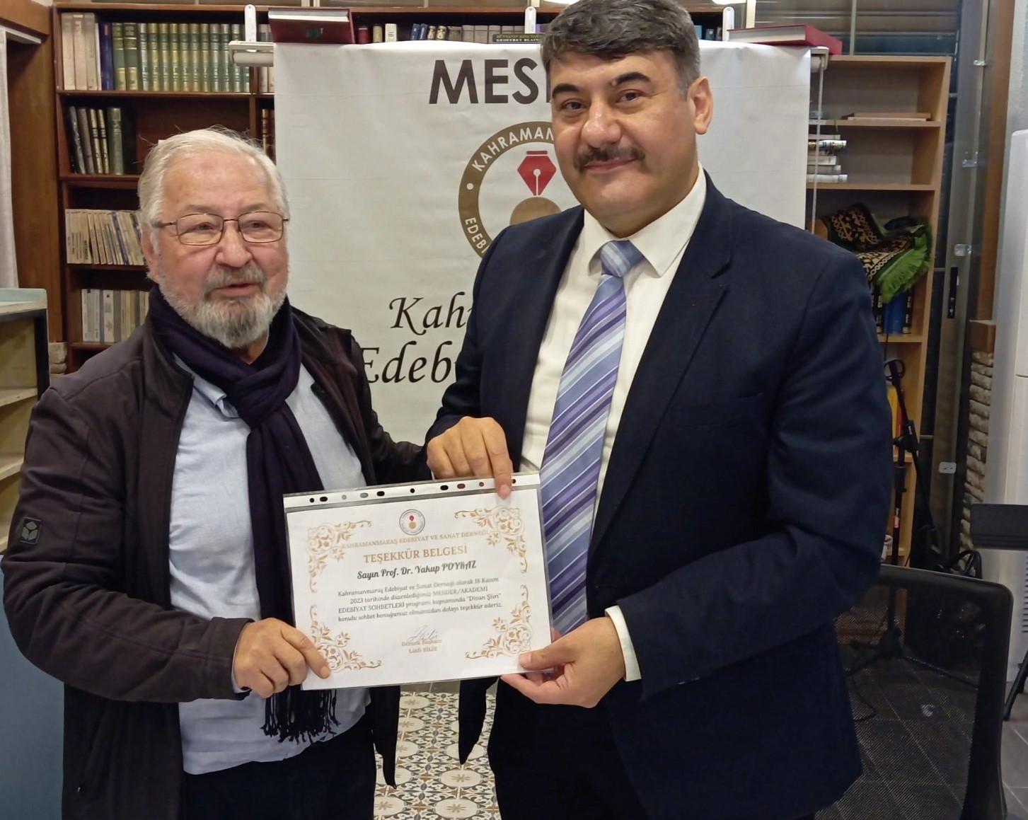 Konferans sonunda dernek başkanı Lütfi BİLİR, Dekanımız Prof. Dr. Yakup POYRAZ’a teşekkür belgesi takdim etti. Çok sayıda katılımcının zevkle izlediği program aynı zamanda Moderatör TV tarafından canlı olarak yayınlandı. Bu vesile ile kentimiz edebiyatına katkılarından dolayı, Dekanımız Prof. Dr. Yakup POYRAZ’a, MESDER derneğine ve değerli katılımcılara çok teşekkür ediyoruz.