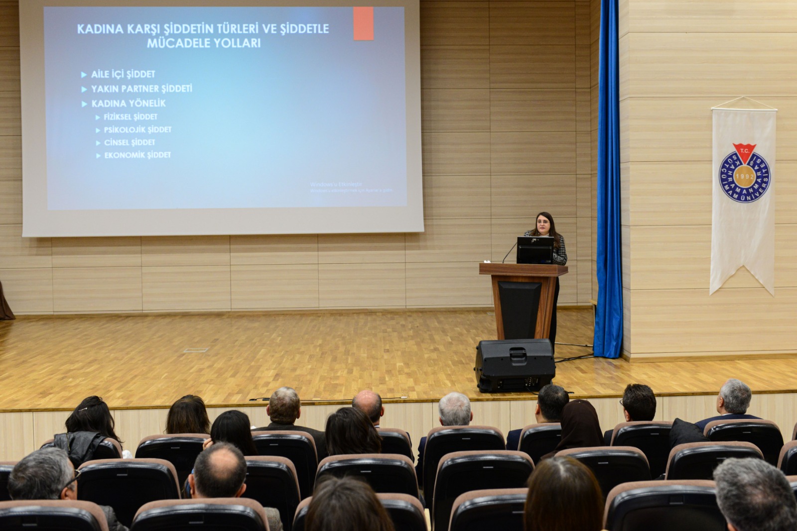 Kahramanmaraş Sütçü İmam Üniversitesinde (KSÜ) 25 Kasım Kadına Yönelik Şiddete Karşı Uluslararası Mücadele Haftası kapsamında ‘Kadına Karşı Şiddetin Türleri ve Şiddetle Mücadele Yolları’ konulu etkinlik düzenlendi.