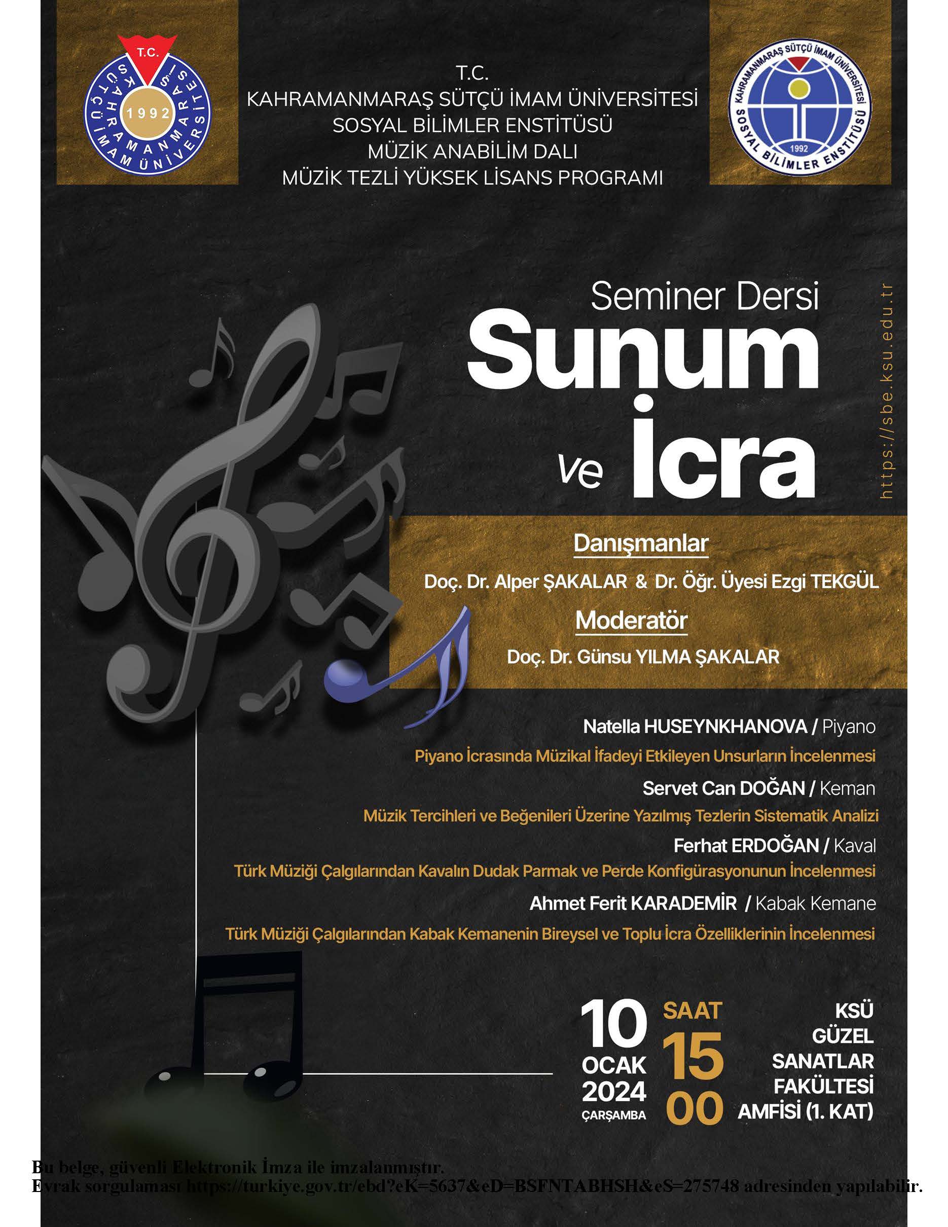 Müzik Ana Bilim Dalı Öğrencilerimizin Seminer Sunumlarına Davet Duyurusu