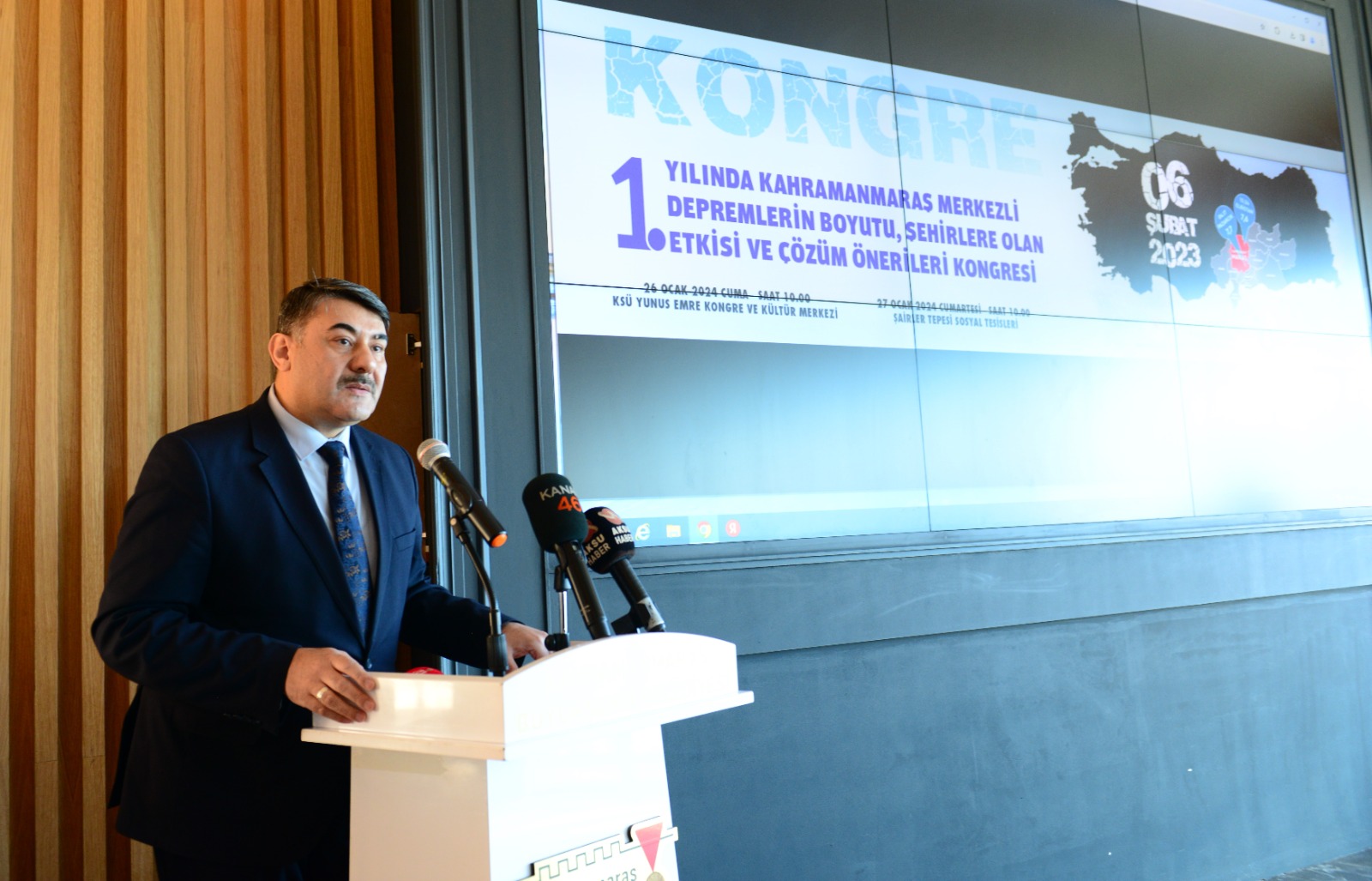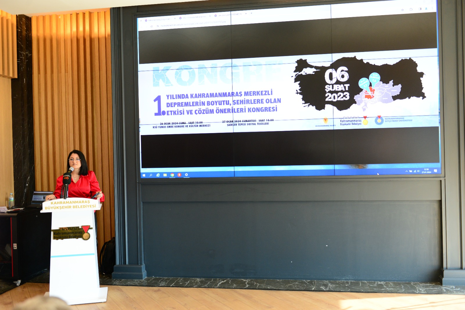 “1. Yılında Kahramanmaraş Merkezli Depremlerin Boyutu, Şehirlere Olan Etkisi ve Çözüm Önerileri” başlıklı kongrenin 26 Ocak Cuma günü açılış programı, panel ve çalıştaylar gerçekleştirilmişti.