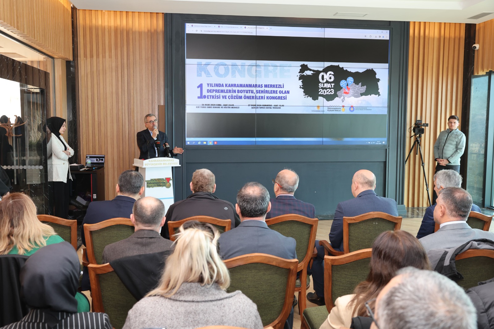 Kahramanmaraş Valiliği, Kahramanmaraş Büyükşehir Belediyesi ve Kahramanmaraş Sütçü İmam Üniversitesinin (KSÜ) işbirliği ile 26-27 Ocak tarihlerinde “1. Yılında Kahramanmaraş Merkezli Depremlerin Boyutu, Şehirlere Olan Etkisi ve Çözüm Önerileri” başlıklı kongrenin 2. oturumu Şairler Tepesinde gerçekleştirildi.