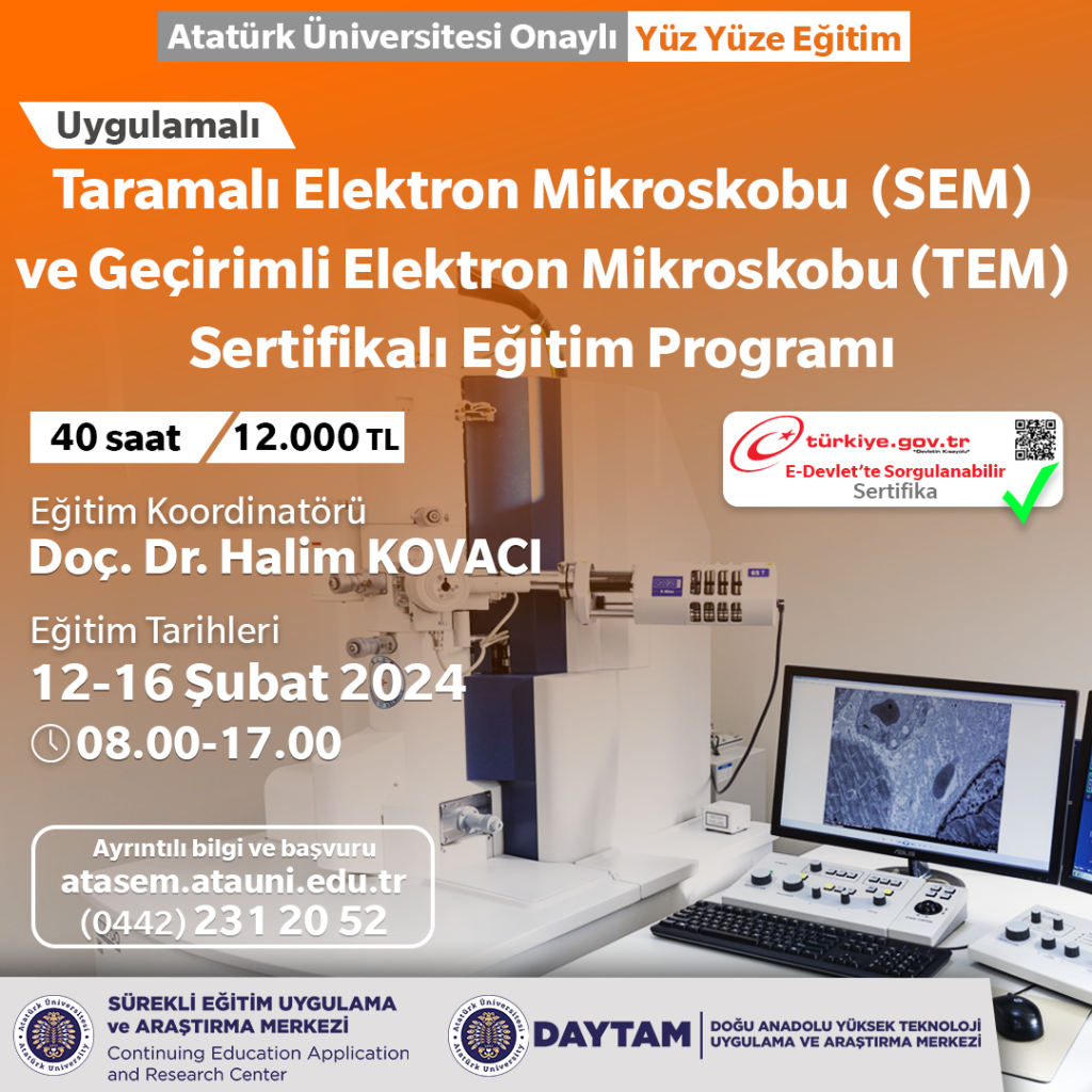 Atatürk Üni. - Uygulamalı Taramalı Elektron Mikroskobu (SEM) ve Geçirimli Elektron Mikroskobu (TEM) Sertifikalı Eğitim Programı