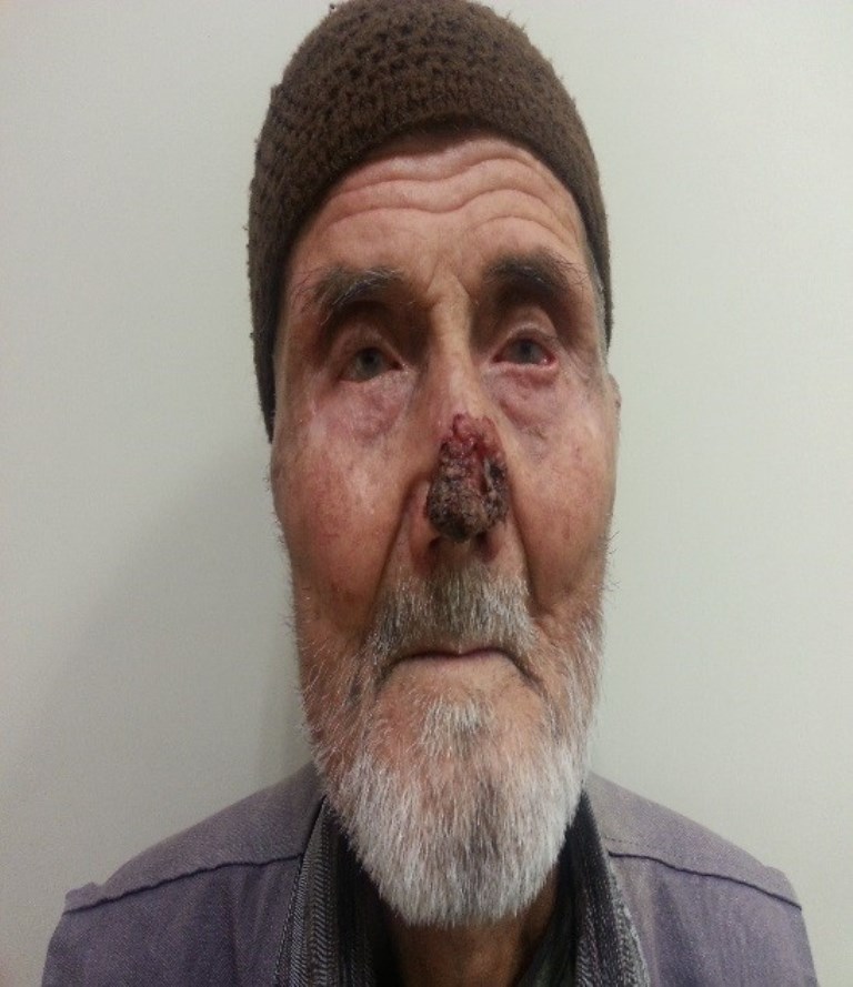 Kahramanmaraş Sütçü İmam Üniversitesi (KSÜ), Sağlık, Uygulama ve Araştırma Hastanesinde 78 yaşındaki hastaya alın bölgesinden alınan dokularla burun yapıldı.