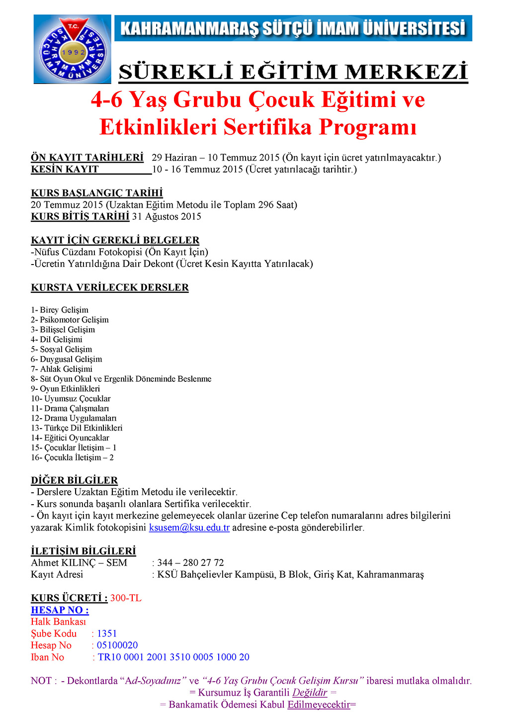 SEM 4-6 Yaş Grubu Çocuk Eğitimi ve Etkinlikleri Sertifika Programı
