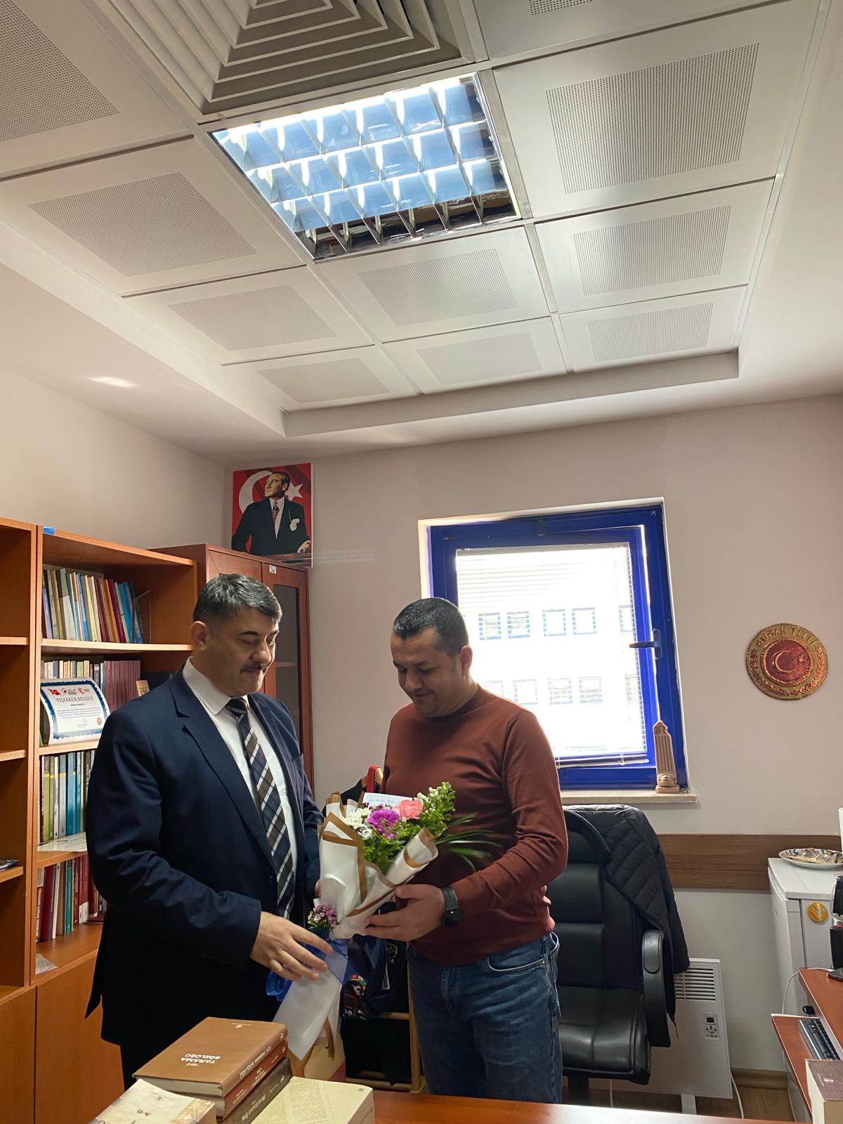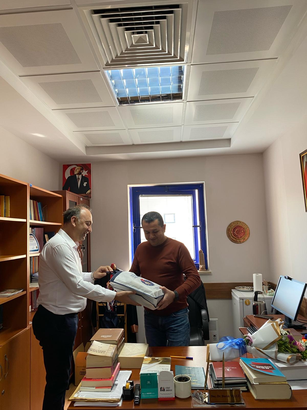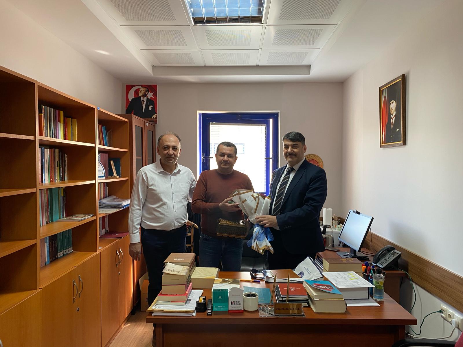 İnsan ve Toplum Bilimleri Fakültesi Dekanı Prof. Dr. Yakup Poyraz, görev süresi sona eren Doç. Dr. Burak Telli’yi çalışma ofisinde ziyaret ederek deprem gibi ağır bir dönemde zor şartlar altında yaptığı hizmetlerden dolayı sayın Telli’ye teşekkür etti ve bu tür hizmetlerin bir bayrak yarışı olduğunu ifade etti. Doç. Dr. Burak Telli de ziyaretten duyduğu memnuniyetini dile getirdi. Ziyarette Fakülte Sekreteri Mustafa Çakallı da hazır bulundu.