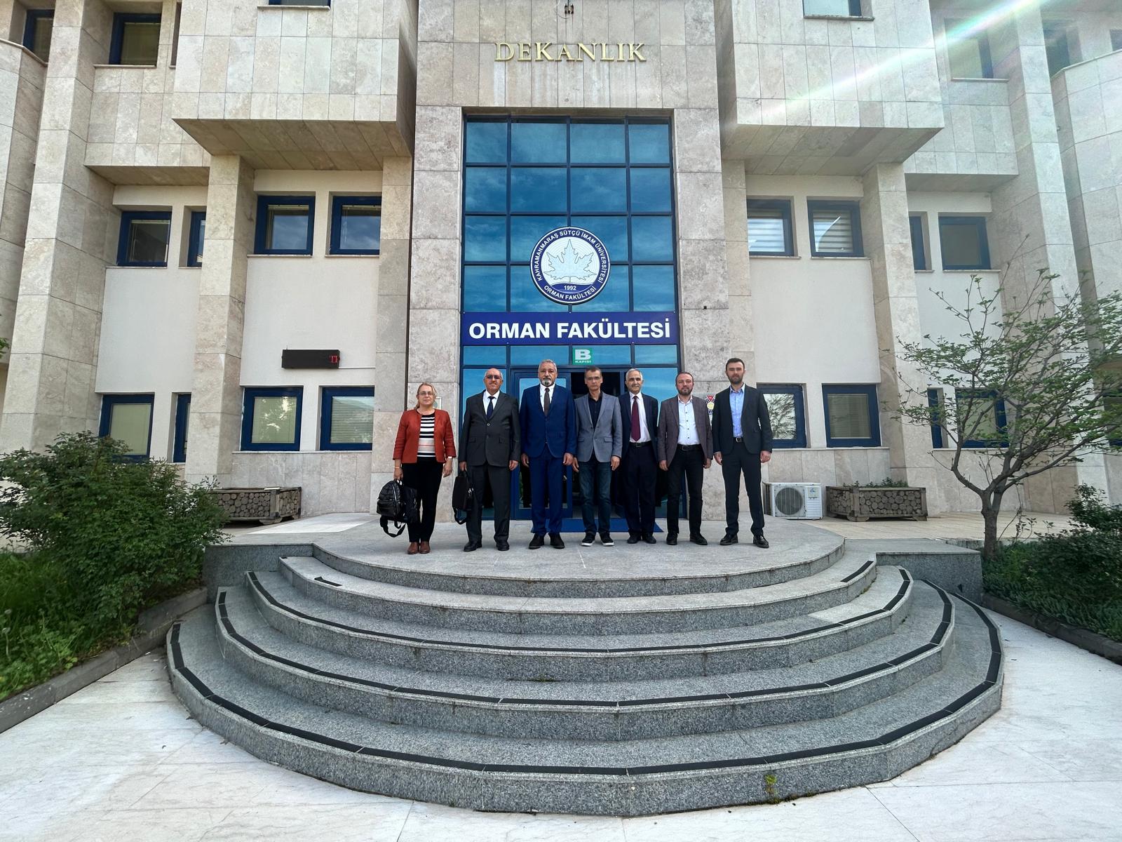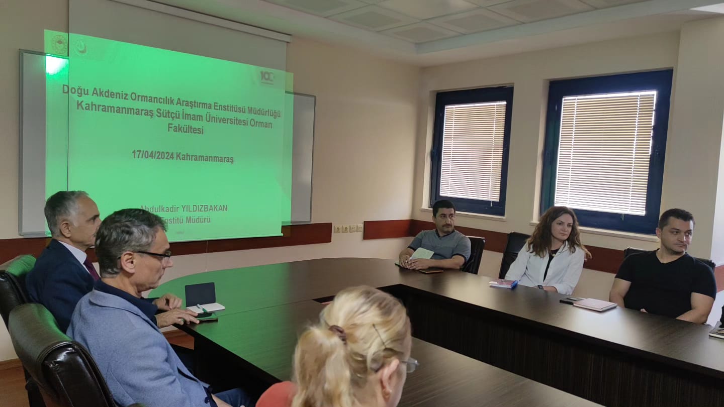 Orman Genel Müdürlüğü, Doğu Akdeniz Ormancılık Araştırma Enstitüsü Müdürü Sayın Abdulkadir YILDIZBAKAN ve Başmühendislerin katılımlarıyla "Araştırılması İstenilen Konular ve Uygulamaya Yönelik Yapılması Gereken Proje Konularının Belirlenmesi" için 17.04.2024 tarihinde Orman Fakültemizde toplantı gerçekleştirilmiştir. Fakülte Dekanımız Prof.Dr. Fatih MENGELOĞLU, Dekan Yardımcıları, Orman Mühendisliği, Orman Endüstri Mühendisliği ve Peyzaj Mimarlığı Bölümü Hocalarımızın katılımlarıyla biraraya gelinmiştir. Orman Fakültesi Dekanımızın açılış ve selamlama konuşmalarının ardından Enstitüsü Müdürü tarafından 2023 yılında gerçekleşen projeler ve devam eden projelerin içeriği hakkında bir sunum gerçekleştirmiştir. 2024 yılında ve sonra ki yıllarda araştırılması gereken konular ile ilgili Hocalarımızla istişareler yapılmıştır. Toplantı sorular ve proje taleplerinin alınmasından ardından tamamlanmıştır.
