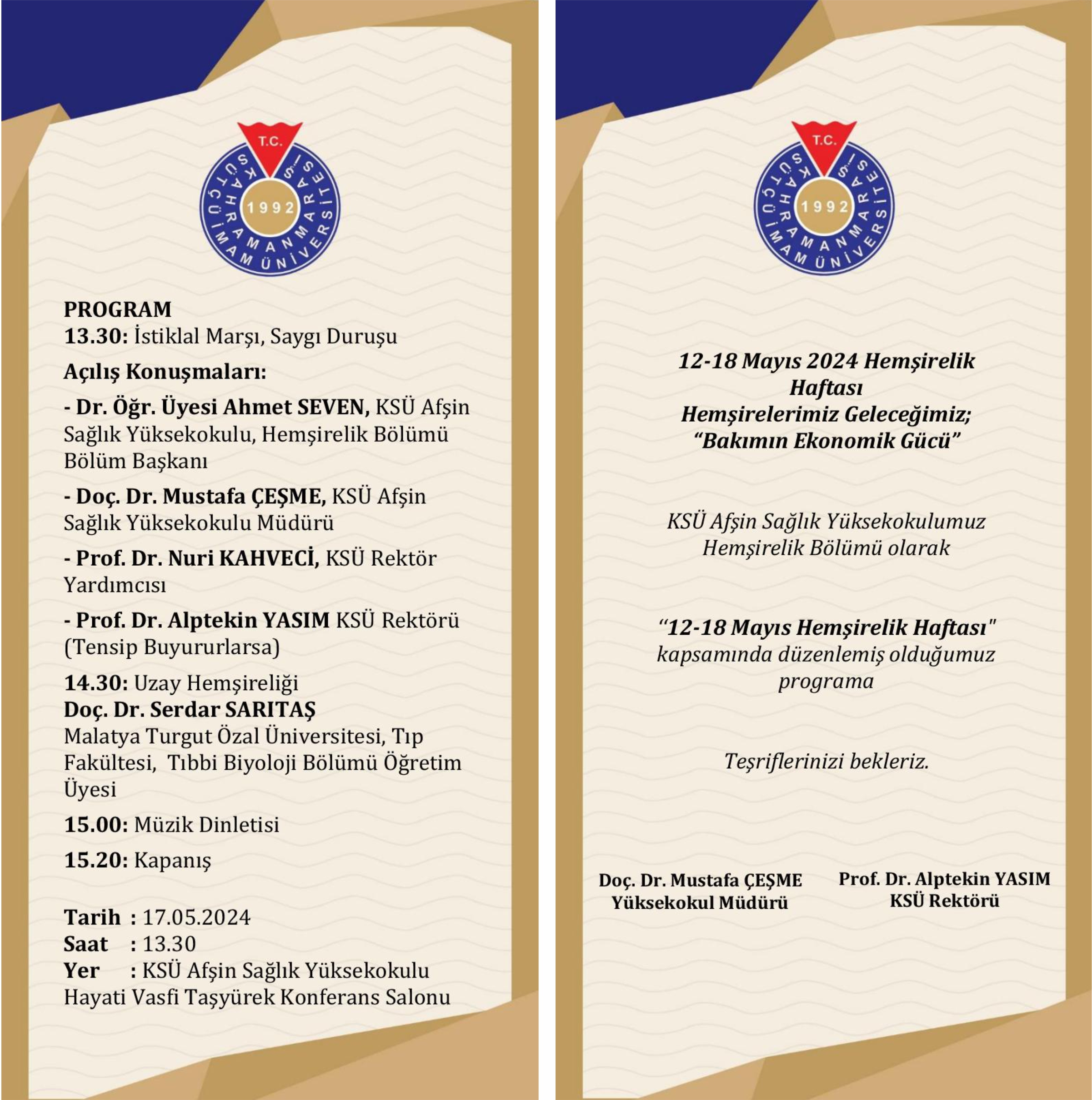 KSÜ Afşin Sağlık Yüksekokuluz 12-18 Mayıs Hemşirelik Haftası Hemşirelerimiz Geleceğimiz; "Bakımın Ekonomik Gücü"