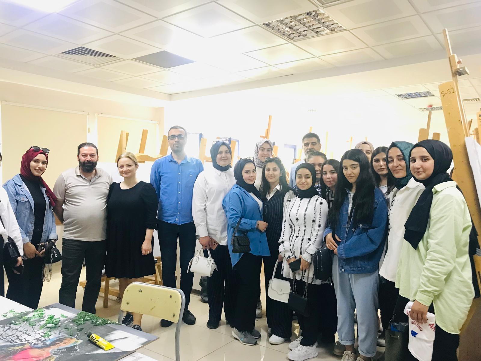 30.04.2024 tarihinde Toki Yıldız Mesleki ve Teknik Anadolu Lisesi Moda Bölümü öğretmenleri ve öğrencileri Güzel Sanatlar Fakültesini ziyaret etti. Tekstil ve Moda Tasarımı Bölüm Başkanı Doç. Dr. Mehmet Zahit BİLİR ve Güzel Sanatlar Fakültesi Dekan Yardımcısı Dr. Öğr. Üyesi Soner OKAN tarafından bölümler hakkında bilgi verildi. Doç. Dr. Mehmet Zahit BİLİR ve proje öğrencileri tarafından açılan Nature Tekstil Baskı Sergisi ve bölüm atölyeleri gezildi. Toki Yıldız Mesleki ve Teknik Anadolu Lisesi öğretmen ve öğrencileri bu ziyaretten çok memnun olduklarını ifade ederek Dekanlığımıza teşekkür ettiler.