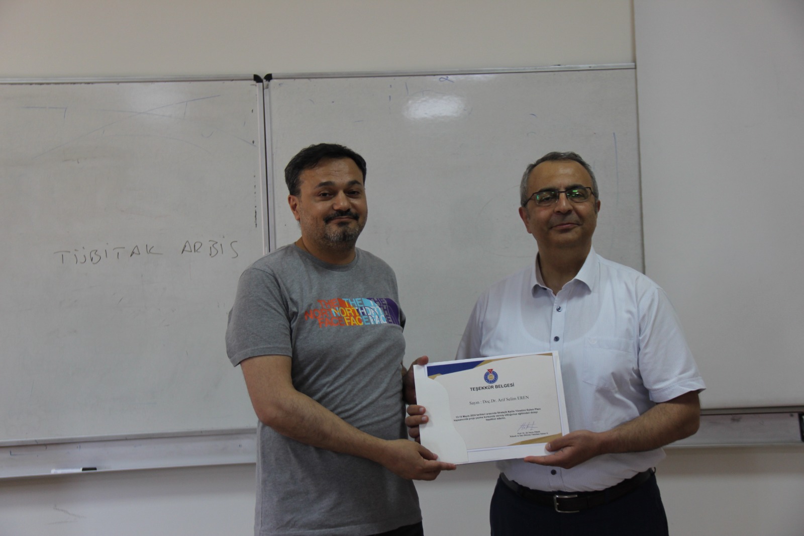 Fakültemiz Dekanı Prof. Dr. Ali Haluk Pınar’ın Doç. Dr. Arif Selim Eren’e teşekkür belgesi takdimi ile kurs tamamlanmıştır. Kapanış konuşmasında projelerin önemine vurgu yapılmış ve hem üniversitemizin hem de fakültemizin gelişiminde projelerin önemli bir yer tutacağı belirtilmiştir.
