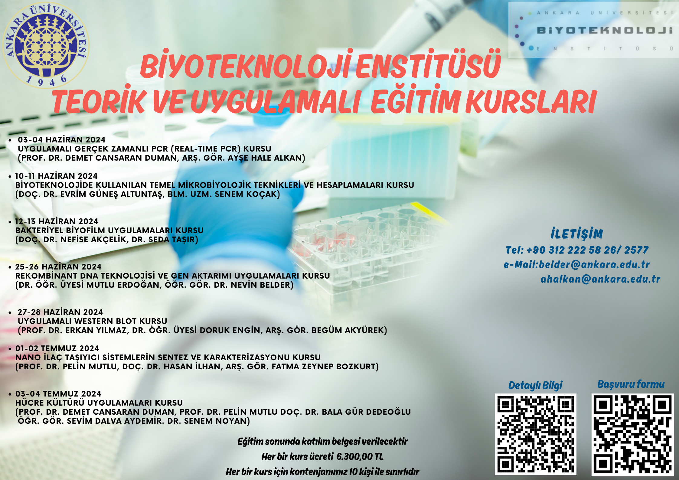 Ankara Üni. - Biyoteknoloji Enstitüsü 2024 Kurs Afiş ve Programı