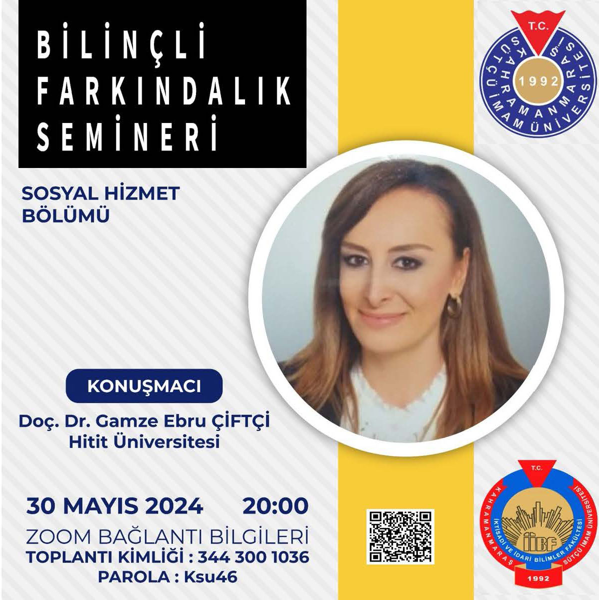 saat 20:00'de ZOOM üzerinden Doç. Dr. Gamze Ebru ÇİFTÇİ'nin katılımı ile "Bilinçli Farkındalık"