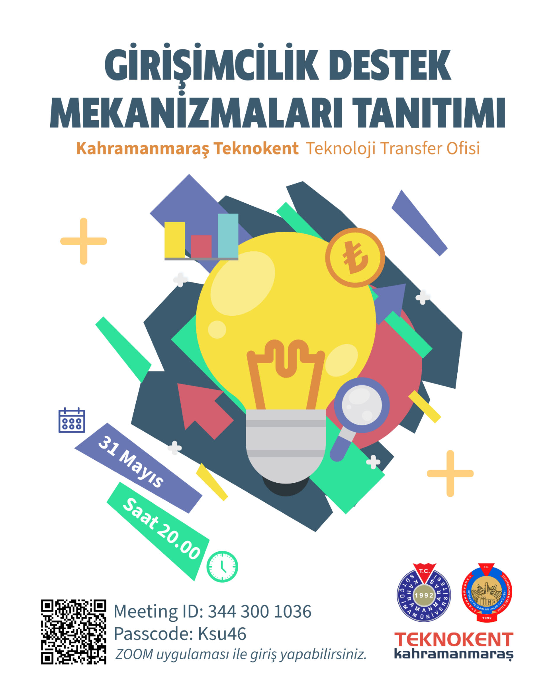 Kahramanmaraş Teknokent Teknoloji Transfer Ofisi ve KSÜ İktisadi ve İdari Bilimler Fakültesi Dekanlığı işbirliği ile 31 Mayıs 2024 tarihinde saat 20:00'de ZOOM üzerinden "Girişimcilik Destek Mekanizmaları Tanıtımı" isimli etkinlik düzenlenecektir.