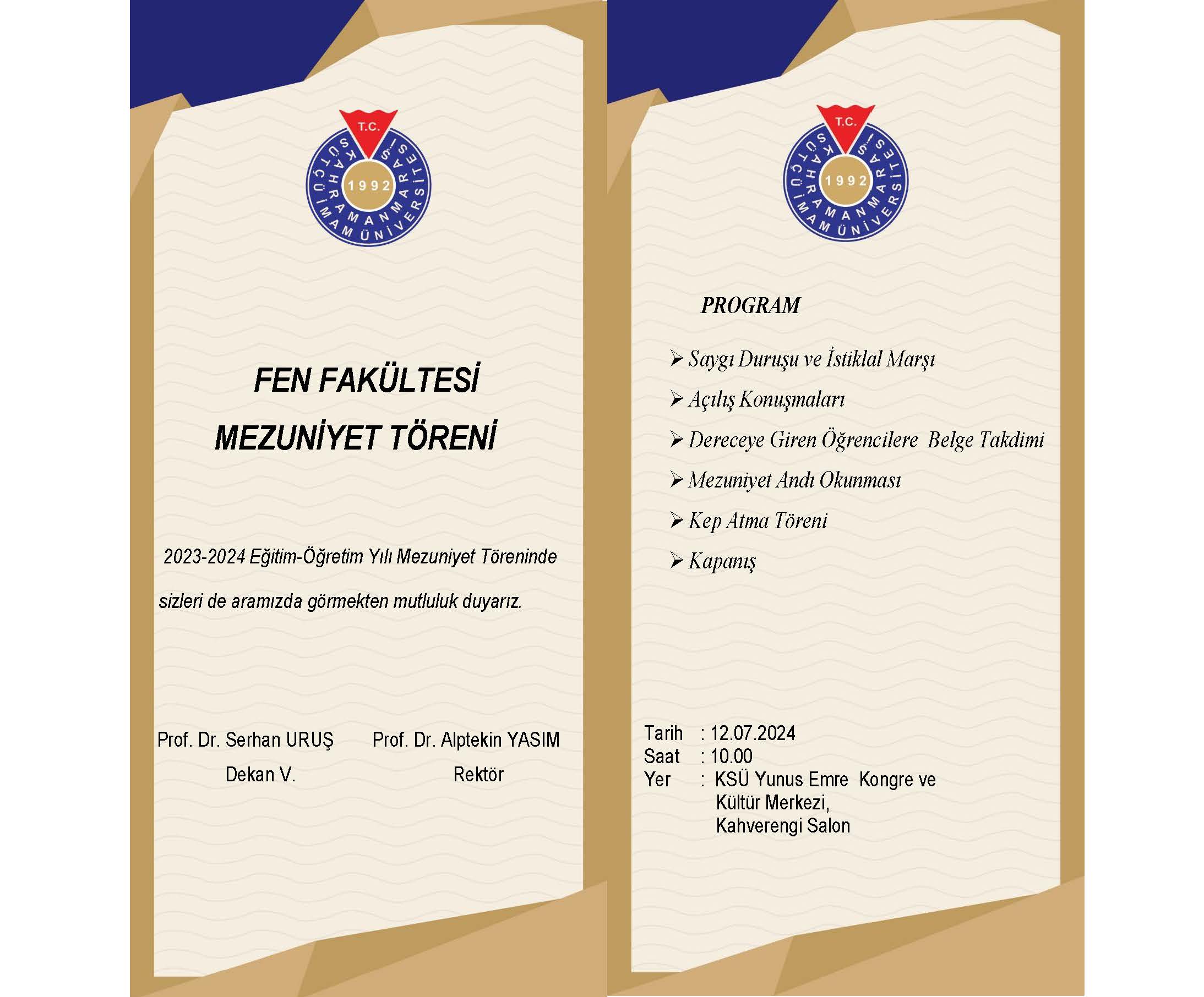 Not: Öğrencilerimiz Mezuniyet Töreni için Cübbe ve Kep'leri Dekanlık Öğrenci İşleri Orhan SARI'dan teslim alabilirler.