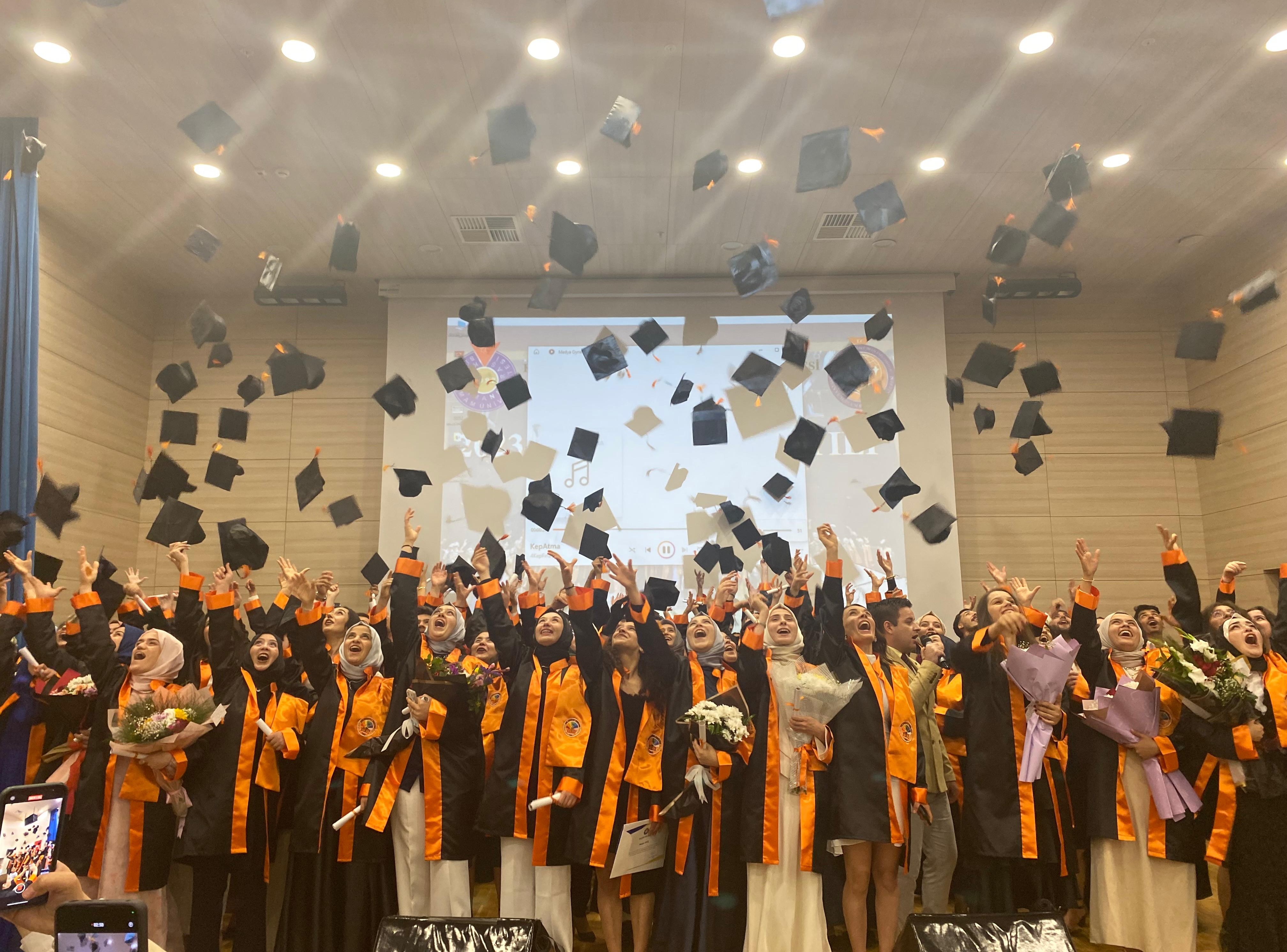Tören öğrencilerin topluca kep atmaları ile son buldu. Kurulan fotoğraf standında öğrenciler, arkadaşları, aileleri ve hocaları ile mezuniyet anı fotoğrafları çektirdi.