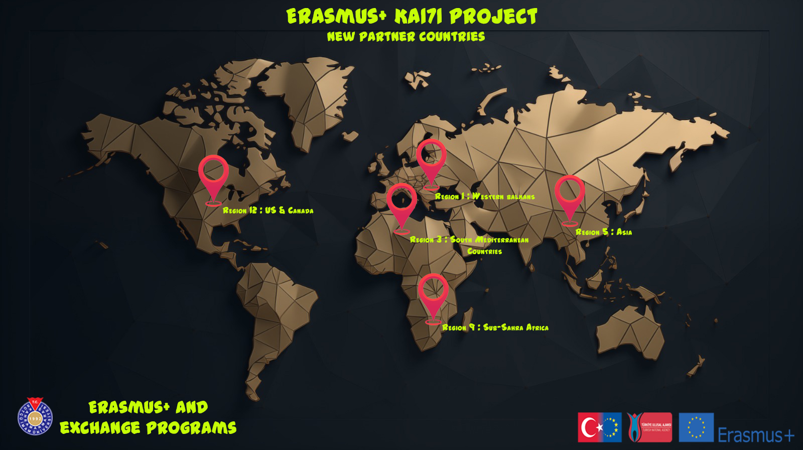 KA131 (Partner Ülkeler) haricinde kabul edilen KA171 projesi ile personel ve öğrencilerimiz Avrupa dışında Dünyanın diğer bölgelerinde yer alan prestijli Üniversitelerde hareketliliğe katılabileceklerdir.