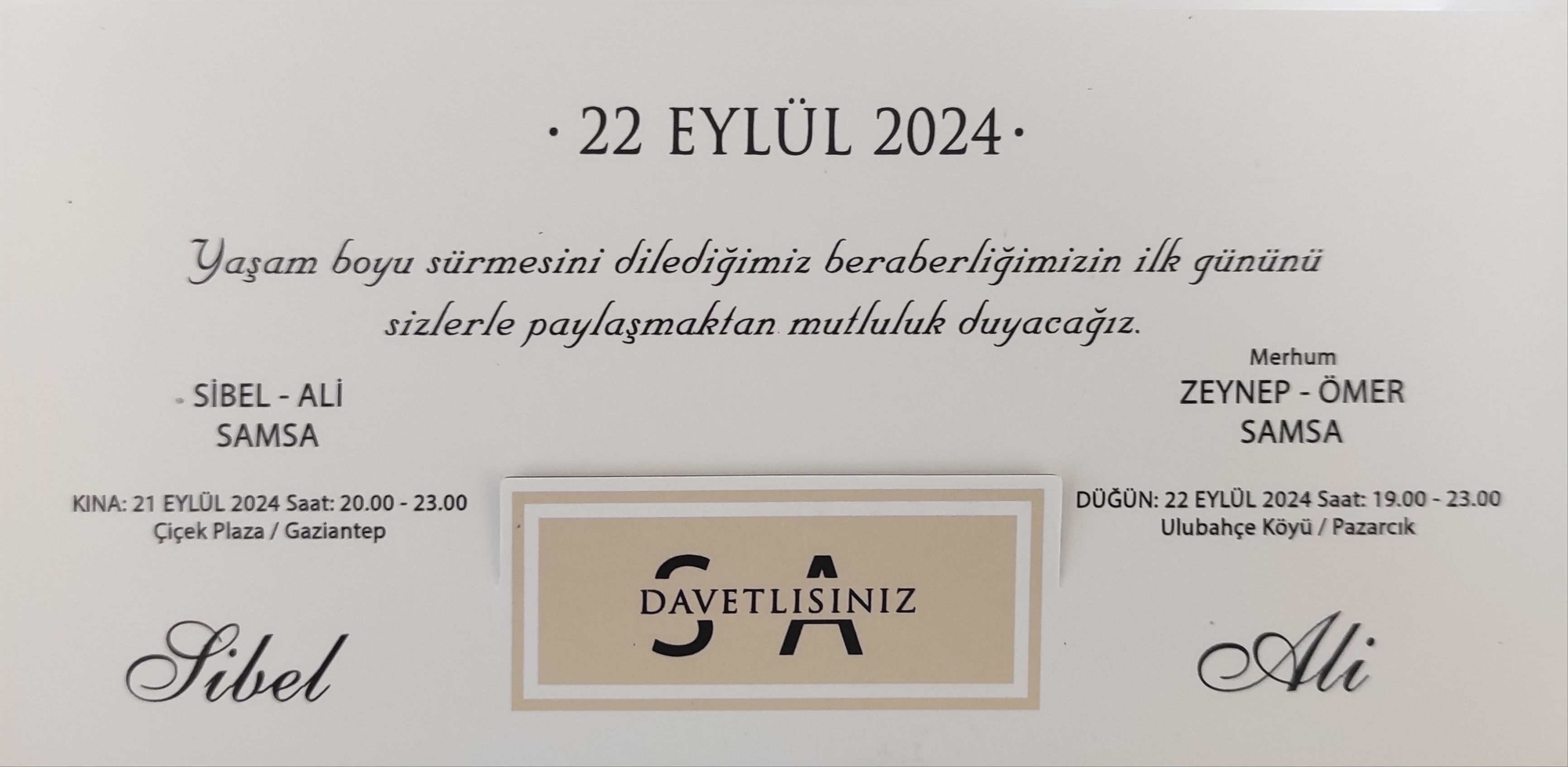 Bilgi İşlem Daire Başkanlığı personeli merhum Ömer Samsa'nın oğlu Ali Samsa, 22 Eylül 2024 Pazar günü dünya evine girecektir. Samsa ailesini ve genç çifti tebrik eder, mutluluklar dileriz.