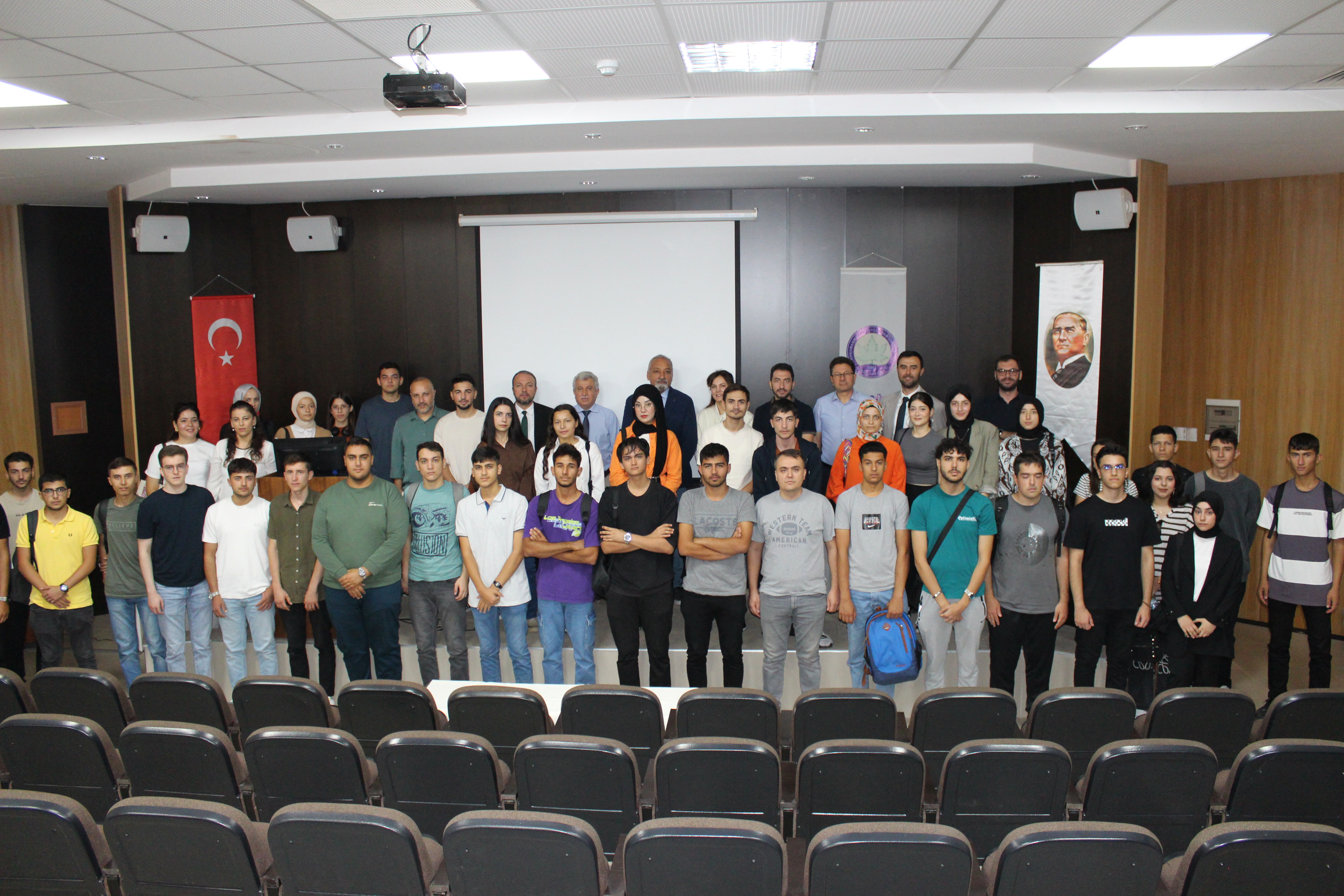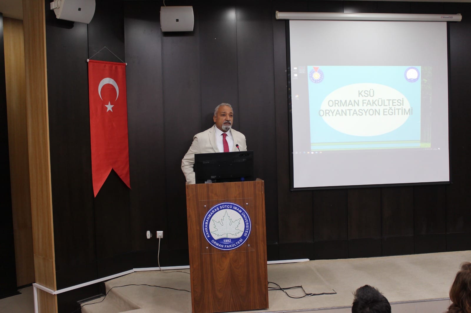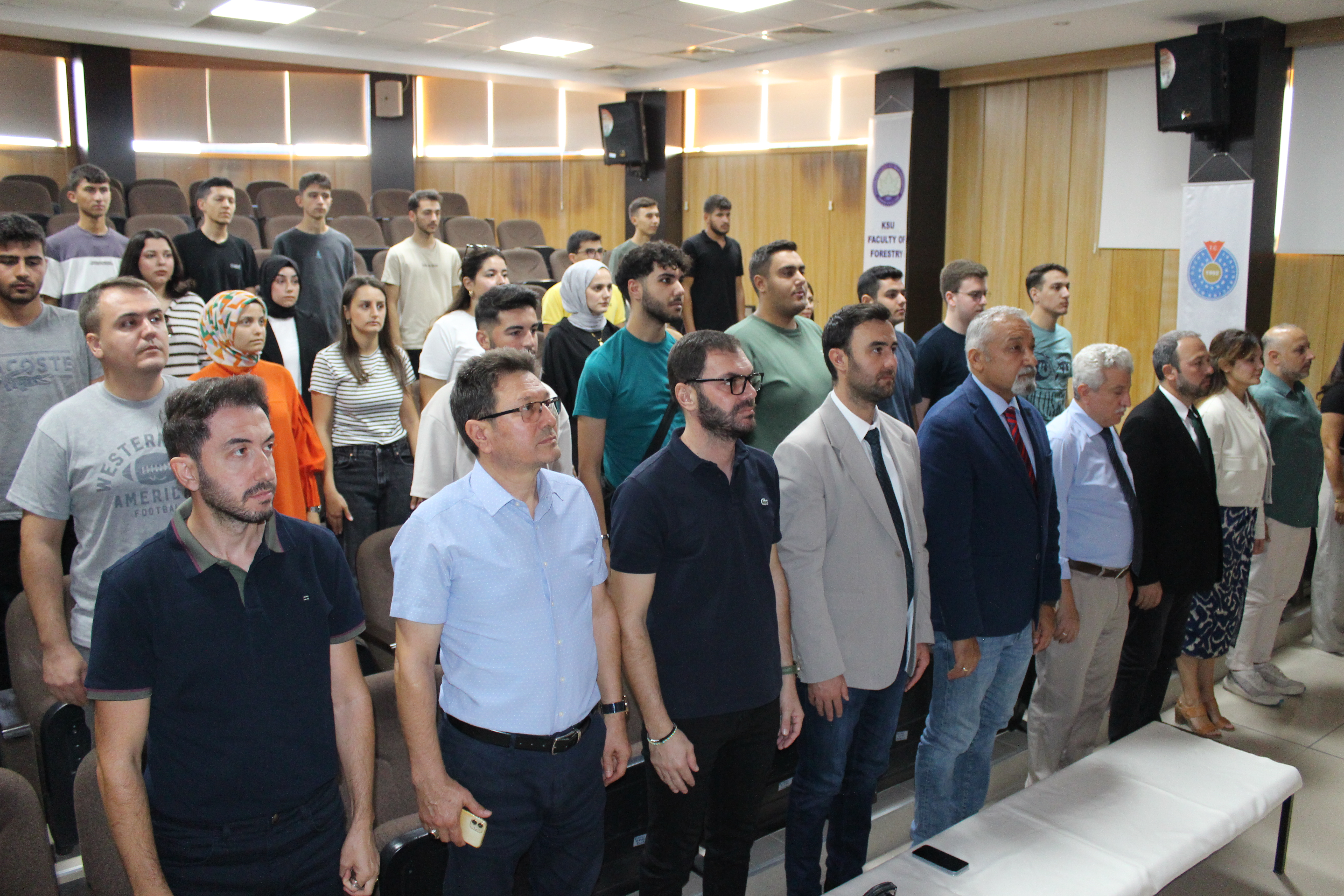 2024-2025 Eğitim Öğretim Yılı Orman Fakültesi; Orman Mühendisliği, Orman Endüstri Mühendisliği ve Peyzaj Mimarlığı Bölümlerinde eğitim gören 1. ve 2.ci sınıf öğrencileri için 7-8 Ekim 2024 tarihleri arasında Prof.Dr. Mehmet Kanat Konferans Salonu’nda oryantasyon programı düzenlenmiştir. Programa Orman Fakültesi Dekanımız Prof.Dr. Fatih MENGELOĞLU, Dekan Yardımcımız Dr.Öğr.Üyesi Kıvanç YÜKSEL, Orman Mühendisliği Bölüm Başkan Vekili Dr.Öğr.Üyesi Ömer EKER, Orman Endüstri Mühendisliği Bölüm Başkanı Prof.Dr. Ahmet TUTUŞ, Peyzaj Mimarlığı Bölüm Başkanı Doç.Dr. Şule KISAKÜREK, Orman Mühendisleri Odası Kahramanmaraş Şube Başkanı Prof.Dr. Kadir KARAKUŞ, öğrenci danışmanları ve akademik personellerimiz katılım sağlamışlardır. Saygı duruşu ve İstiklal Marşı’nın okunmasının ardından Bölüm Başkanlarımız tarafından öğrencilerimize bölümlerin tanıtımı, anabilim dalları, Lisans Eğitim Öğretim Yönetmeliği, ilgili mevzuatlar, öğrenci bilgi sistemi (OBS), uzaktan eğitim sistemi, ders kayıtları, sınavlar ve öğrenci toplulukları vb. hususlarda bilgiler verilmiştir. Kahramanmaraş Şube Başkanı Orman Mühendisleri Odasının Faaliyetleri, Şube Başkanlığı sorumluluk alanındaki çalışmalar ve öğrenciler ile yapılabilecek etkinlikler hakkında bilgiler paylaşmıştır. Orman Fakültesi Dekanımız konuşmasında öğrencilerimiz ve akademik personellerimiz adına yeni eğitim-öğretim döneminin hayırlı olmasını ve öğrencilerimizin başarılı olabilmenin yollarını, kendilerini en iyi şekilde yetiştirmelerini ve Dekanlık olarak herzaman yanında olduklarını ifade ederek güzel dilek ve temennilerde bulunmuşlardır. Soru ve cevap bölümünün ardından öğrencilerimiz ve akademik personellerimizle birlikte toplu fotoğraf çektirilmiştir. Katılımlarından ve katkılarından ötürü tüm öğrencilerimize ve akademik personelimize teşekkür ederiz. Orman Fakültesi Dekanlığı olarak aramıza yeni katılan sevgili öğrencilerimize eğitim-öğretim döneminde başarılar diliyoruz.