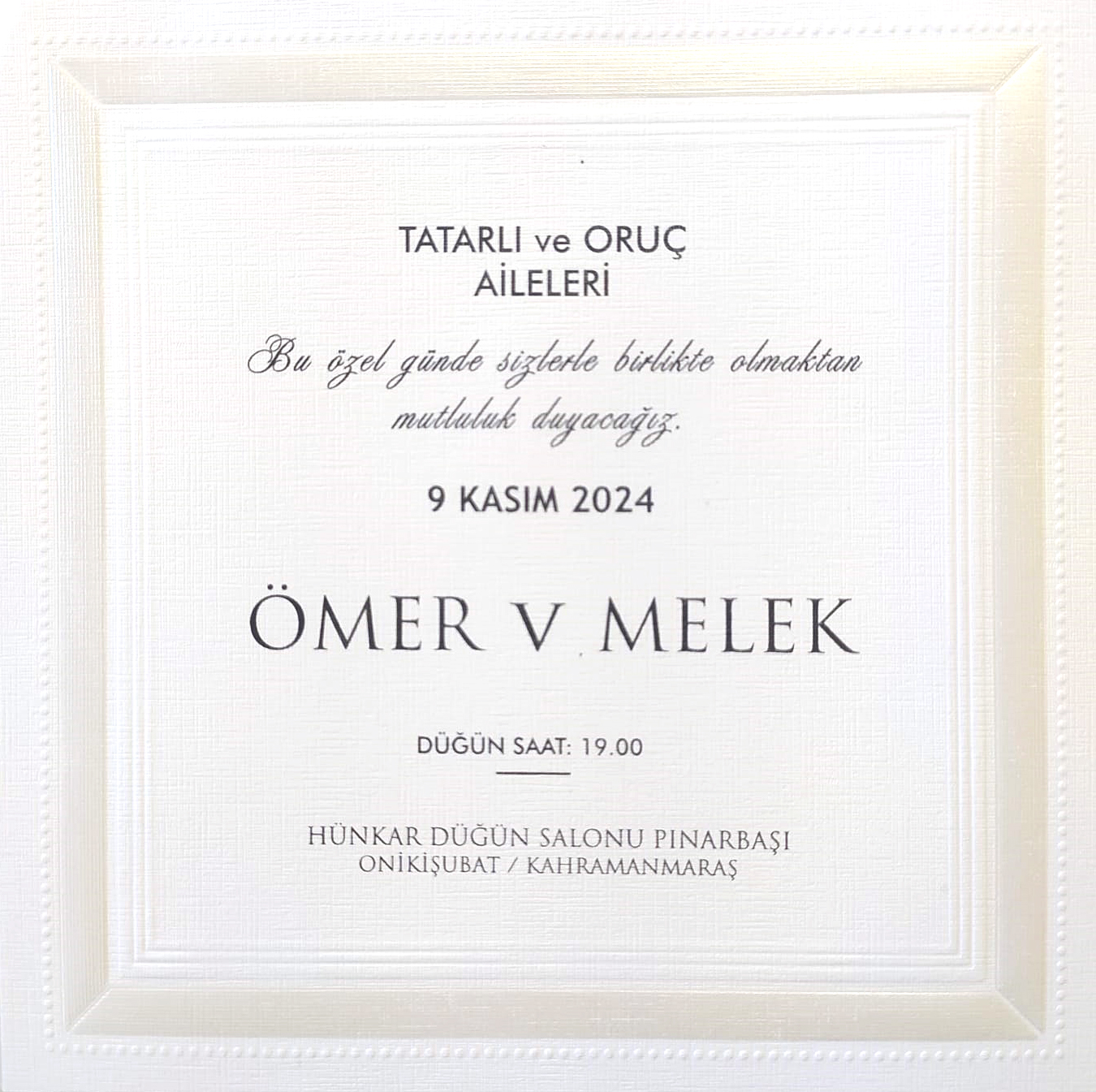Üniversitemiz Genel Sekreterlik personeli Mustafa Oruç'un kızı Melek Oruç, 9 Kasım 2024 Cumartesi günü dünya evine girecektir. Oruç ailesini ve genç çifti tebrik eder, mutluluklar dileriz.