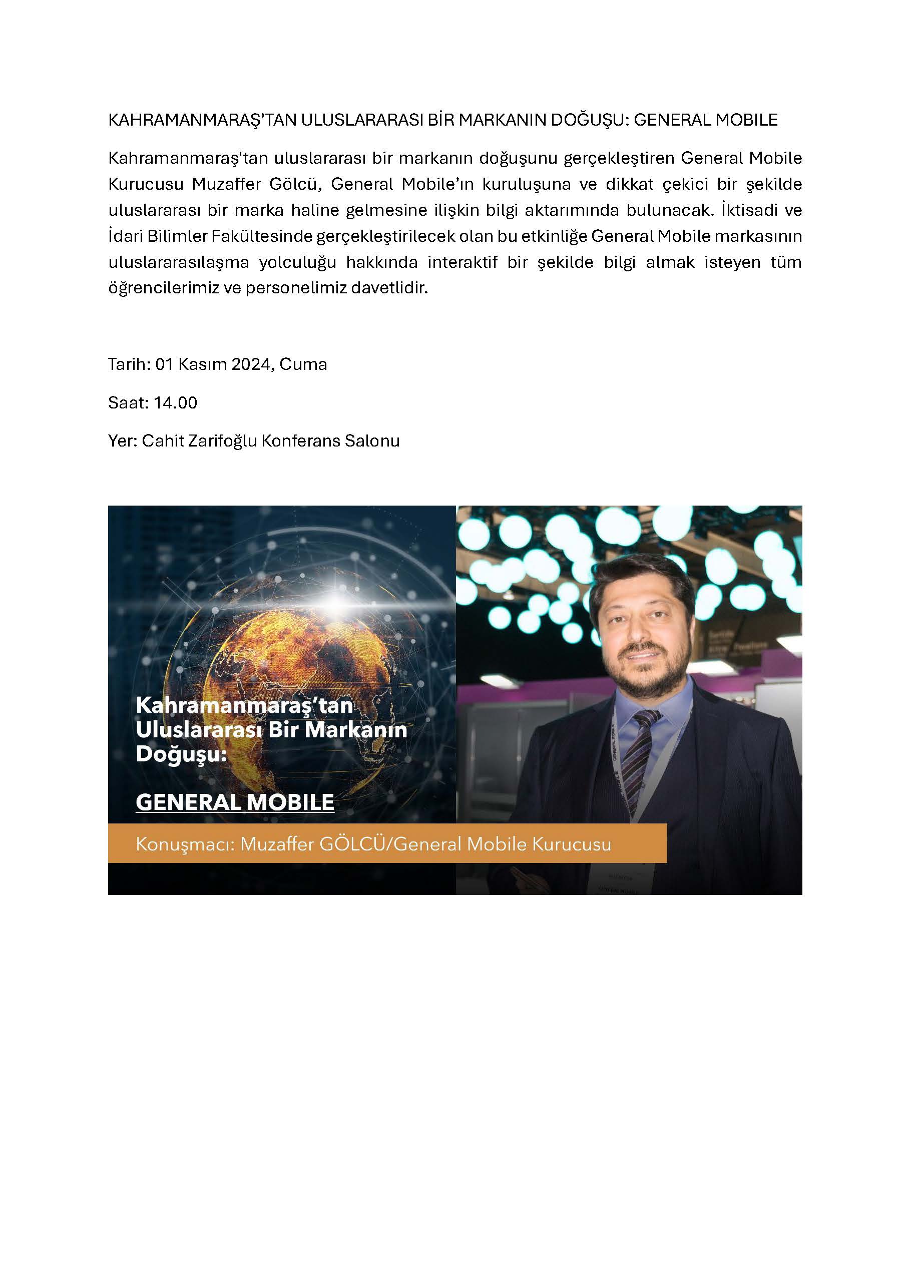 Konferans "Kahramanmaraş'tan Uluslararası Bir Markanın Doğuşu: General Mobile"