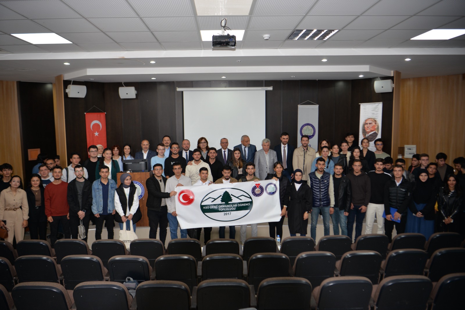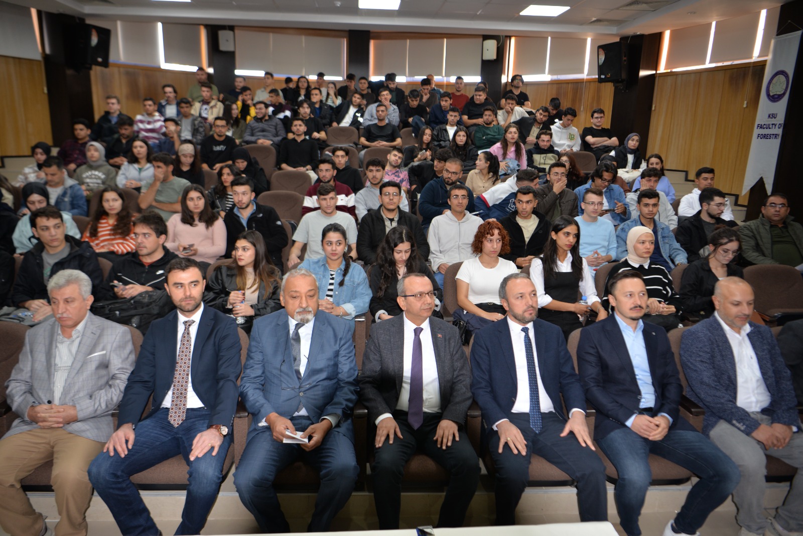 Kahramanmaraş Sütçü İmam Üniversitesi (KSÜ) Orman Fakültesi Genç Ormancılar Öğrenci Topluluğu "Kariyer Günleri Etkinlikleri" kapsamında 5 Kasım 2024 Salı günü saat: 10.00’de Orman Fakültesi Prof.Dr. Mehmet Kanat Konferans Salonunda Kahramanmaraş Orman Bölge Müdürü Sn. Yusuf KARARTI tarafından "Kahramanmaraş Orman Bölge Müdürlüğünde Ağaçlandırma Faaliyetleri" ve “kariyer olanakları ve mesleki tecrübeleri” ile ilgili etkinlik düzenlenmiştir. Programa Orman Fakültesi Dekanımız Prof.Dr. Fatih MENGELOĞLU, Dekan Yardımcılarımız, Orman Mühendisliği, Orman Endüstri Mühendisliği ve Peyzaj Mimarlığı Bölümü akademisyenlerimiz, öğrencilerimiz ve Orman Mühendisleri Odası Kahramanmaraş Şube Başkanı Prof.Dr. Kadir KARAKUŞ katılım sağlamışlardır. Saygı duruşu ve İstiklal Marşı’nın okunmasının ardından açılış konuşmaları gerçekleştirilmiştir.
