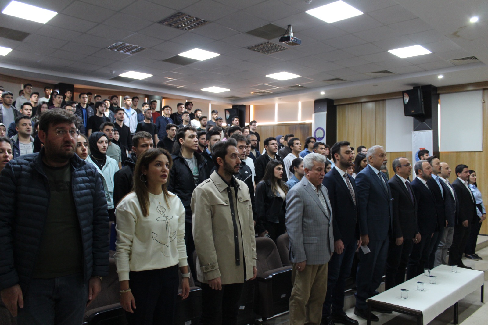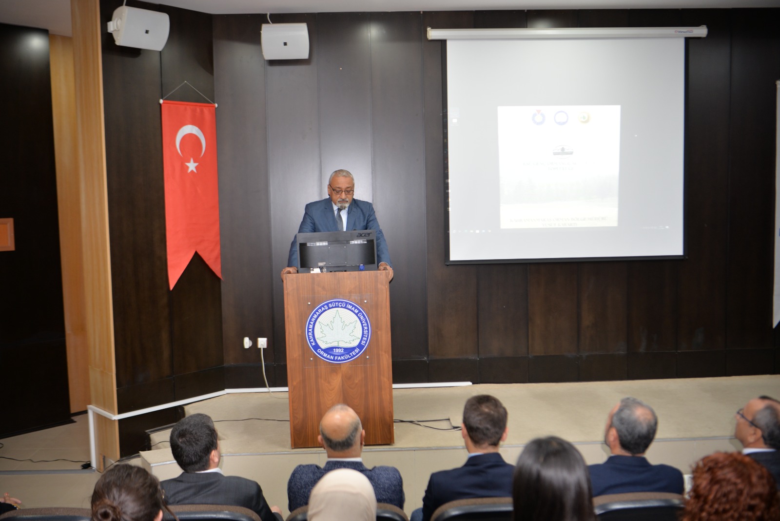 Kahramanmaraş Orman Bölge Müdürü Yusuf KARARTI; Kahramanmaraş Orman Bölge Müdürlüğünün yönetimi ve faaliyet alanlarıyla ilgili genel durumuna ilişkin bilgiler vermesinin ardından 2003 yıllarında Kahramanmaraş’ta %28 olan orman alanlarının son 20 yıl da yapılan ağaçlandırma çalışmaları neticesinde %36 oranına ulaştığını belirtmiştir. Son olarak orman alanı bakımından ülke geneli sıralamasında Kahramanmaraş’ın 12. Sırada olduğunu, gelir getirici türler kapsamında ceviz, badem, zeytin vb. fidanların orman köylülerine verildiğini ve şehrimizde meydana gelen orman yangınlarına ilişkin verileri aktarmıtır. Daha sonra öğrencilerimize yönelik kariyer ve mesleki deneyimlerini paylaşan Orman Bölge Müdürü 11 Kasım 2024 saat 11:00’de gerçekleştirilecek olan Milli Ağaçlandırma Günü etkinliğine tüm öğrencilerimizi ve akademisyenlerimizi davet etmiştir.