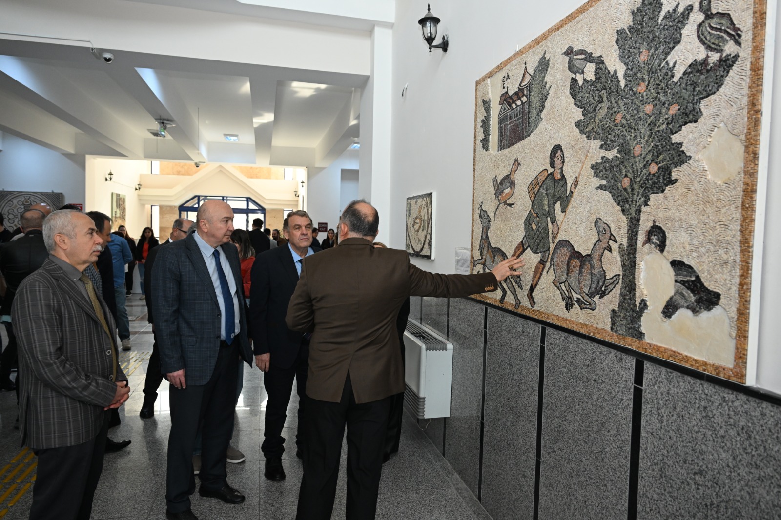 Sergide Güzel Sanatlar Fakültesi öğretim üyesi Doç. Dr. Mehmet Akif KAPLAN’ın 2014-2024 yılları arasında mozaik dersi kapsamında yaptırmış olduğu mozaikler sergilenmektedir. Sergi Roma dönemine ait mozaikleri kapsayan sergide dördü büyük mozaik panel olmak üzere toplamda kırk dört (44) mozaik eser yer almaktadır. Mozaik sergisi Kahramanmaraş Germenicia, Antakya, Efes, Gaziantep Zeugma, Şanlıurfa Edessa, Adıyaman Kommagene krallığından günümüze ulaşan mozaiklerin replikaları ve mozaiklere ait figüratif detaylardan oluşmaktadır. Sergilenen eserlerde Antakya, Efes, Zeugma mozaik öreklerini eski Yunan ve Roma dönemine ait mitolojik efsanelerden detaylar örneklendirilirken, Germenicia, Edessa ve Kommegene mozaiklerinin örneklerinde ise Kahramanmaraş, Şanlıurfa ve Adıyaman ilinin doğa floryası ve coğrafi özelliklerinin betimlendiği görülür.