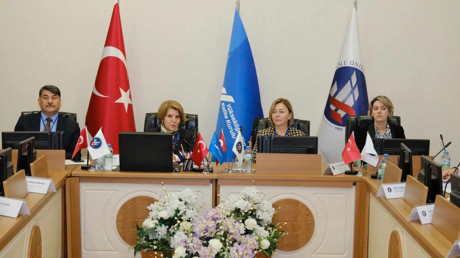 Toplantıya, YÖKAK’ın uzman kadrosu Değerlendirme takımı Başkanı Prof. Dr. Elif Çepni, Akademik Değerlendiriciler Dekanımız Prof. Dr. Yakup Poyraz, Prof. Dr. Adnan Çalık, Prof. Dr. Cansu Alpaslan, Prof. Dr. Mete Özcan, ve Dr. Öğretim Üyesi Mehmet Kürşat Öksüz, İdari Değerlendirici Kalite Koordinatörü Gülcan Akpınar, Uluslararası Değerlendirici Prof. Dr. Elisabed Bzhalava, Öğrenci Değerlendirici Burak Şen katıldı. Toplantıda akademik gelişim ve YÖKAK kalite güvence sistemleri konusunda önemli değerlendirmeler yapıldı. Üç günlük saha ziyaretinde Üniversitenin tüm birimleri ziyaret edilerek, kalite kapsamında yapılan tüm faaliyetler yerinde görüldü ve değerlendirildi.