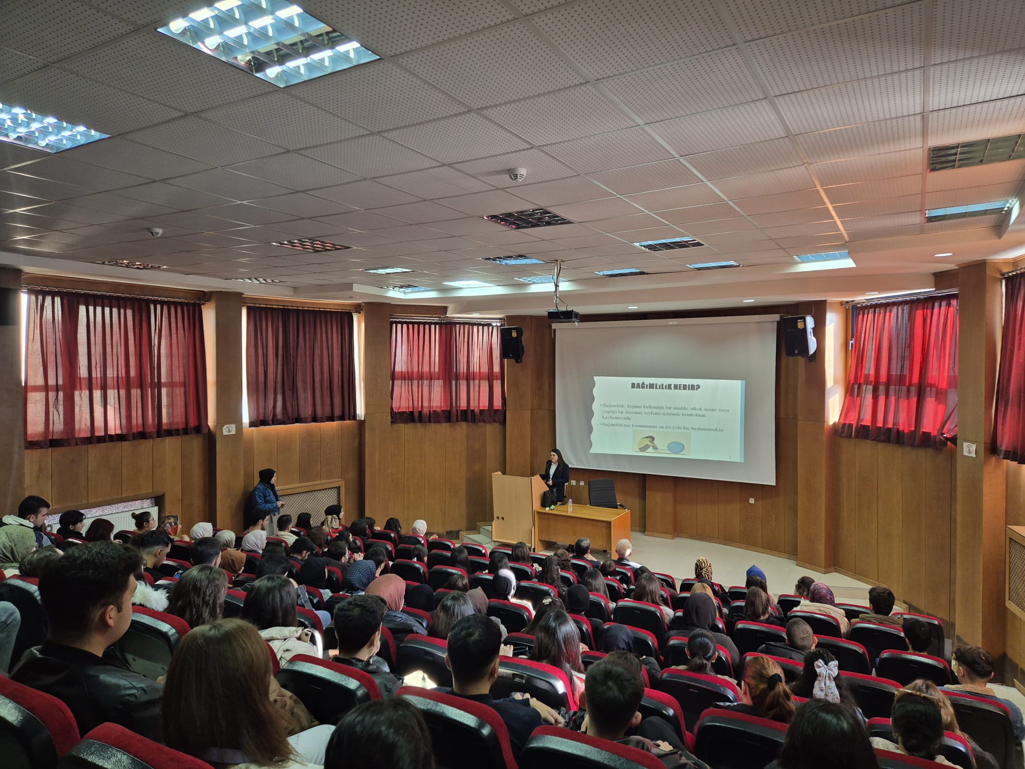 Programın konuşmacısı, Psikoloji Bölümü Öğretim Üyesi Dr. Öğr. Üyesi Derya Karataş hocamızdı. Hocamız, eğitimde bağımlılığın tanımı, bağımlılıkla mücadelenin yolları, bağımlılıkla ilgili toplumsal bilinç oluşturmanın önemi gibi konularda değerli bilgiler paylaştı. Ayrıca, bağımlılıkla mücadelede erken müdahale ve kişisel farkındalığın kritik rolünü vurguladı.
