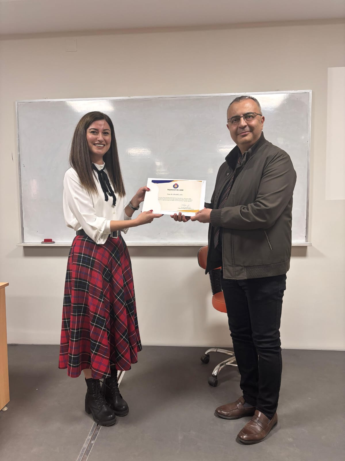 Program sonunda İktisadi ve İdari Bilimler Fakültesi Dekanı Prof. Dr. Ali Haluk PINAR, Pınar KARAOĞLAN’a teşekkür belgesini takdim etmiştir.