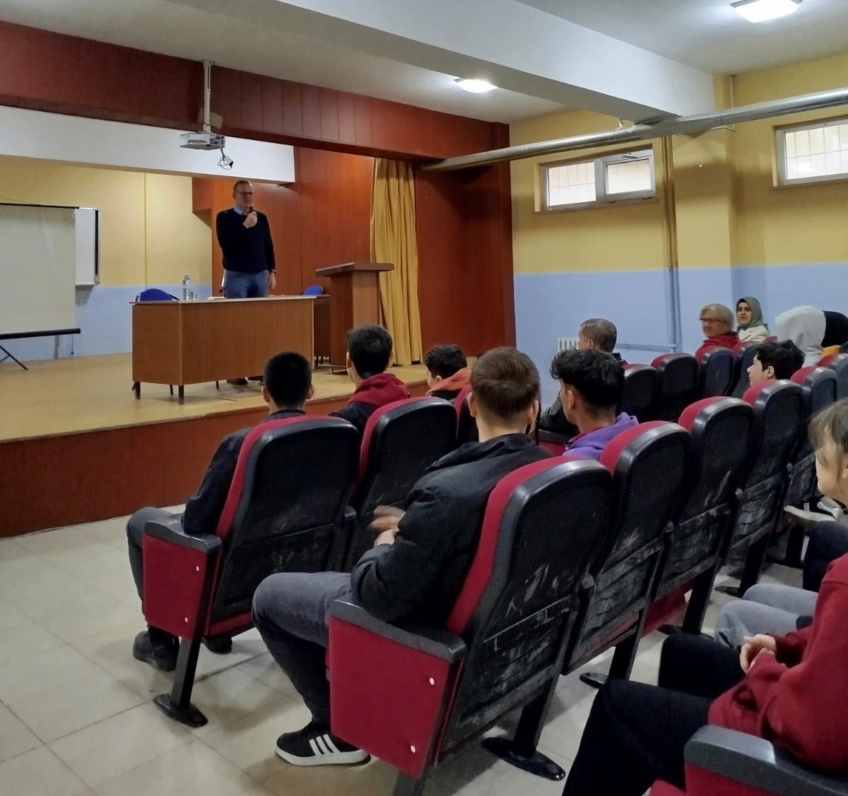 Okul Müdürü Sn. Melih ATILGAN, İngilizce Öğretmenleri Sn. Hayri GEL ve Sn. Betül DARENDE’nin öncülüğünde düzenlenen ve okulun konferans salonunda gerçekleşen söyleşide, öğrenciler yabancı dil öğrenmenin hayatımıza kattığı kolaylıklar ve yabancı dili etkili bir şekilde öğrenme yöntemlerine ilişkin bilgilendirildi.