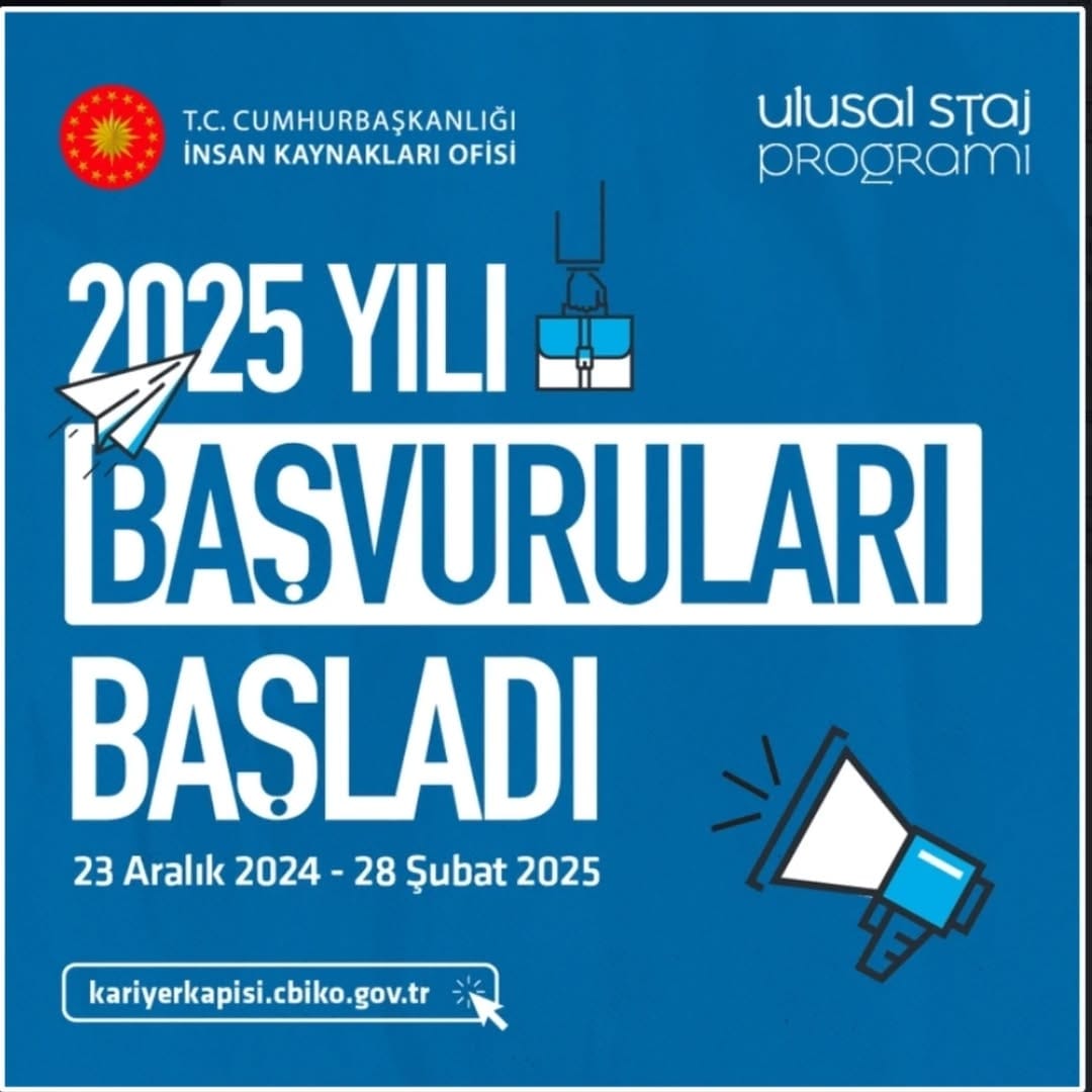 "Ulusal Staj Programı" Başvuruları 23 Aralık 2024-28 Şubat 2025 tarihleri arasında gerçekleştirilecektir.