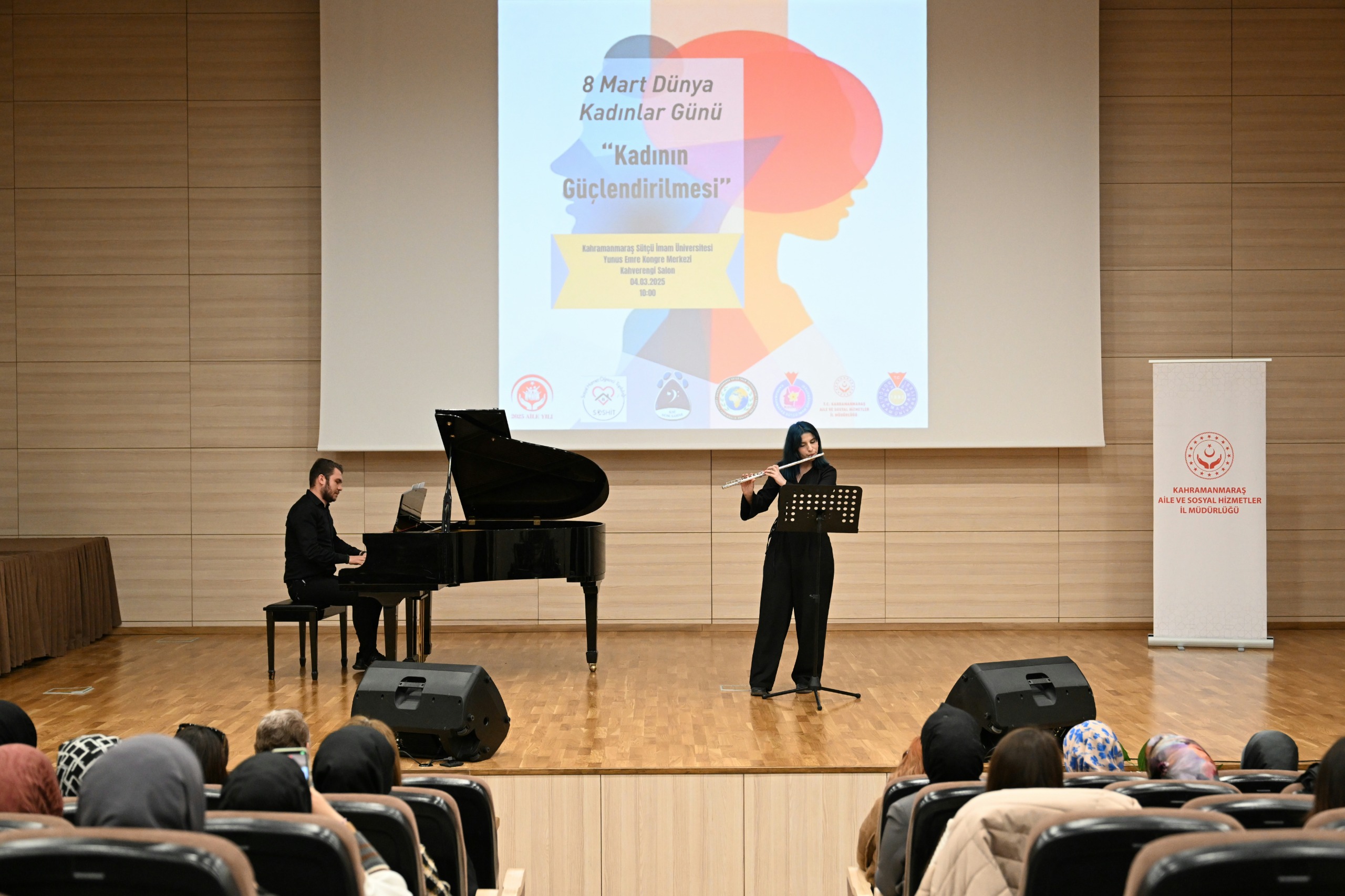 Kahramanmaraş Sütçü İmam Üniversitesi (KSÜ) Yunus Emre Kongre ve Kültür Merkezi’nde, 8 Mart Dünya Kadınlar Günü kapsamında “Kadının Güçlendirilmesi” temalı anlamlı bir etkinlik düzenlendi. KSÜ Kadın Çalışmaları Uygulama ve Araştırma Merkezi (KSÜKAM), Aile ve Sosyal Hizmetler İl Müdürlüğü ve KSÜ Sosyal Farkındalık Öğrenci Topluluğu iş birliğiyle gerçekleştirilen etkinlikte çeşitli programlar yer aldı.