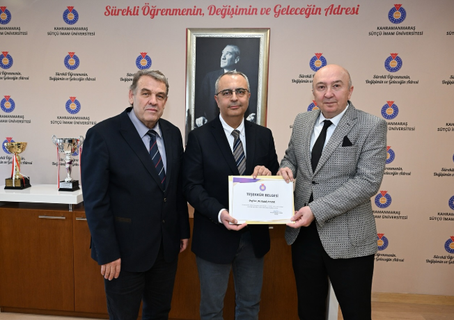 Kahramanmaraş Sütçü İmam Üniversitesi (KSÜ) Rektörü Prof. Dr. Alptekin Yasım, üniversitenin kalite süreçlerine katkı sağlayan Kalite Komisyonu üyelerine teşekkür belgesi takdim etti.