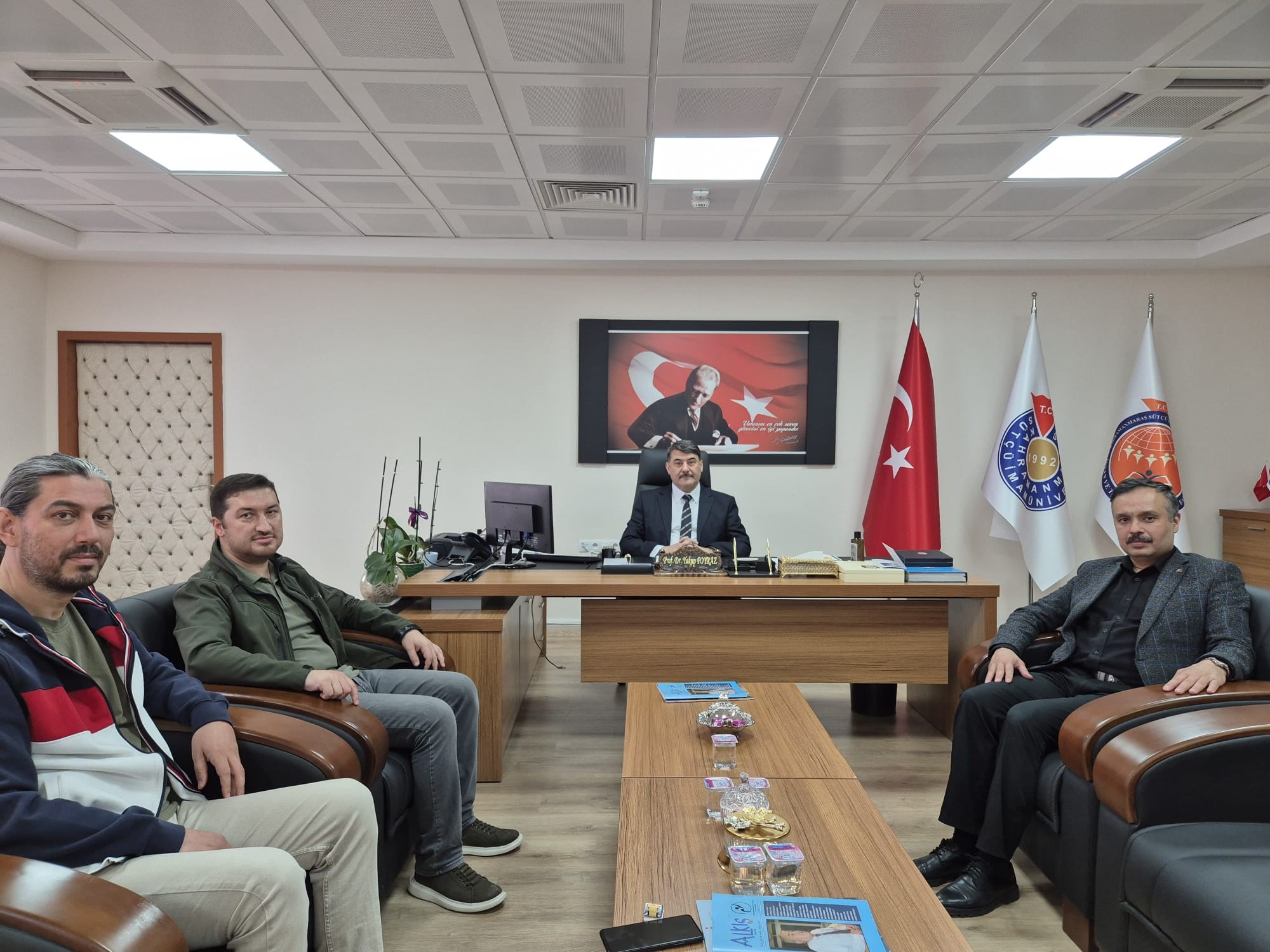 Dekan Prof. Dr. Yakup Poyraz, nazik ziyaret ve hediye edilen kitap için teşekkürlerini ileterek, eğitime katkı sağlayacak her türlü iş birliğine açık olduklarını belirtti. Samimi bir ortamda gerçekleşen ziyaret, günün anısına çekilen hatıra fotoğrafı ile sona erdi.