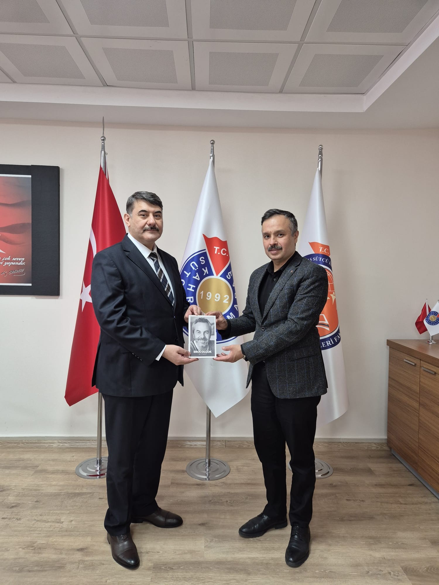 Ziyaret sırasında Şehit Erol Olçok Anadolu İmam Hatip Lisesi Müdürü Muharrem Dilipak, Dekanımız Prof. Dr. Yakup Poyraz’a okulun ismini taşıyan ve Şehit Erol Olçok’un hayatını, fikir dünyasını ve değerlerini anlatan “Erol Olçok” kitabını takdim etti.