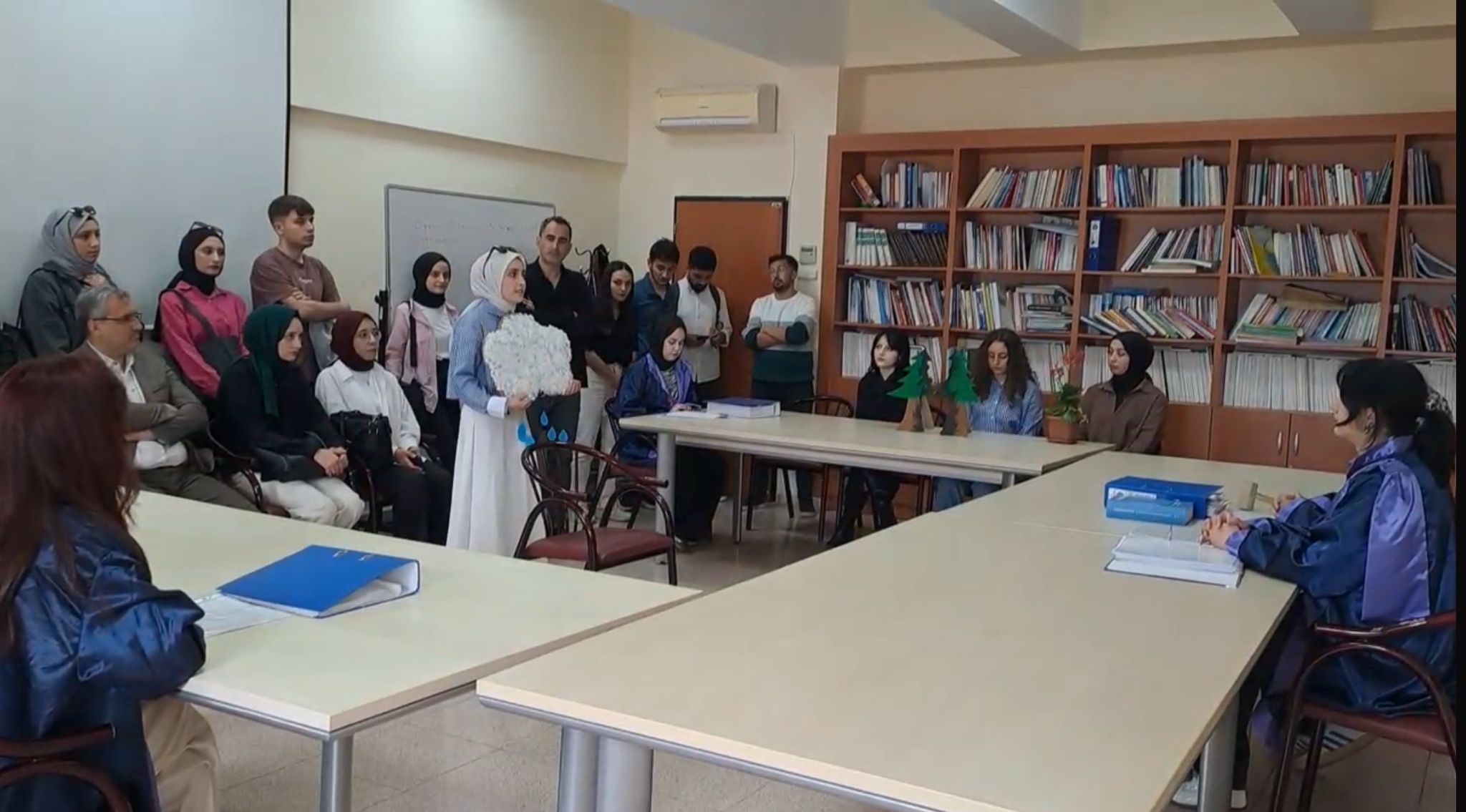 Eğitimde Drama dersi kapsamında, Sosyal Bilgiler Anabilim Dalı öğretim üyesi Prof. Dr. İlhan İLTER rehberliğinde “İnsanoğlunun Doğa Üzerindeki Yıkıcı Etkileri” konulu bir mahkeme draması etkinliği gerçekleştirildi. Etkinlikte, doğaya zarar veren insan faaliyetlerinin yargılandığı kurgusal bir senaryo çerçevesinde oluşturulan “Dünya Ekosistem Mahkemesi” sahneye taşınarak canlandırıldı. Mahkeme etkinliğinde hâkim, savcı, avukat, şahit, mübaşir ve katip gibi klasik rollerin yanı sıra, insanoğlunu temsilen bir sanık (davalı), doğayı temsilen hava, su, toprak ve orman gibi unsurlar da “davacı” olarak temsil edildi. Drama süreci boyunca çevre sorunları, insan faaliyetlerinin doğa üzerindeki etkileri ve ekosistemin kırılgan yapısı; farklı bakış açılarıyla ve güncel veriler ışığında ele alındı.