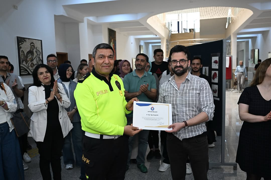 Açılış konuşmalarının ardından Resim Bölümü Öğretim Üyelerine belge ve çiçek takdim edildi.