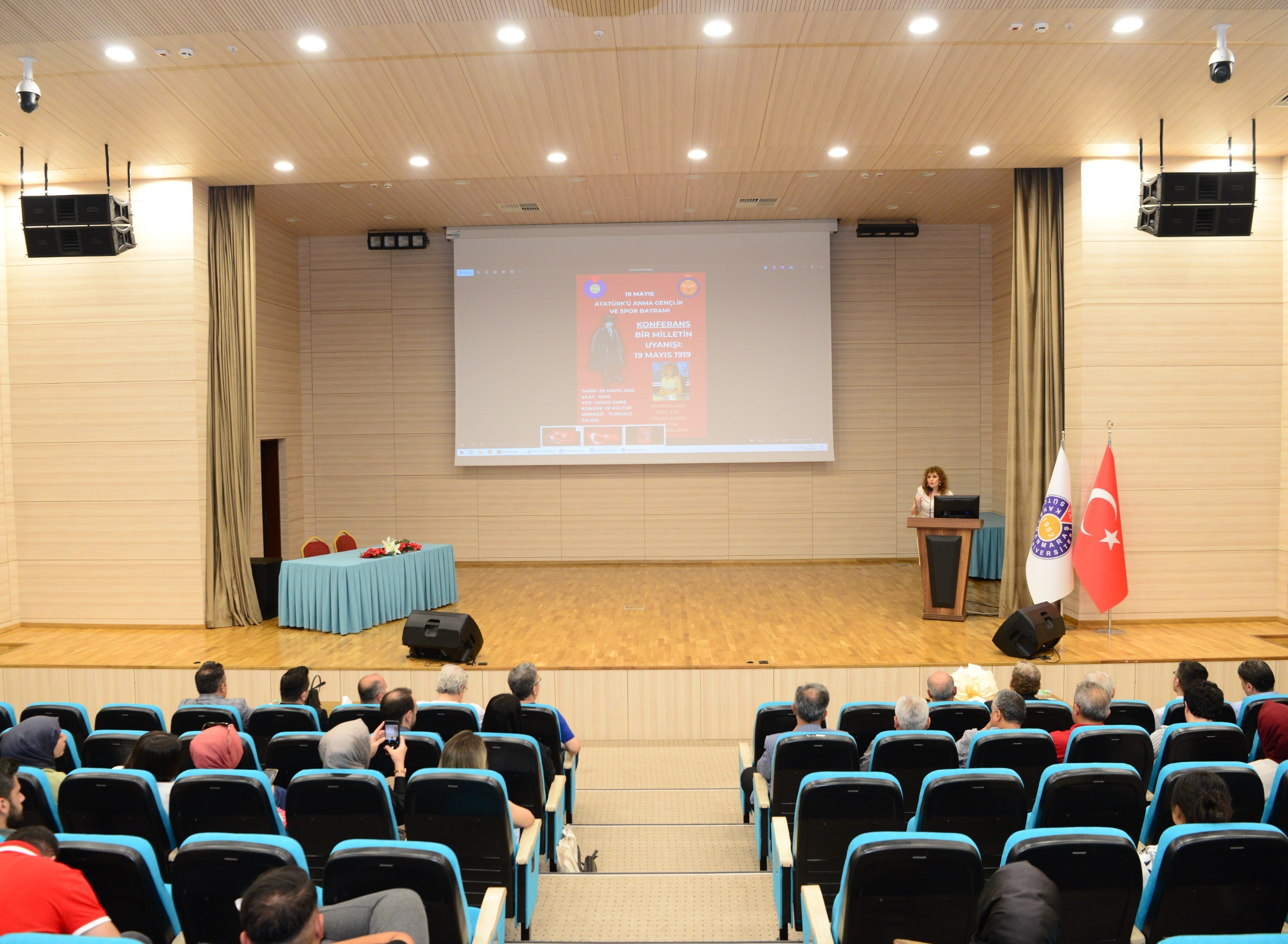 KSÜ Yunus Emre Kongre ve Kültür Merkezi Turkuaz Salonda gerçekleştirilen konferans, Fakültemiz Tarih Bölümü Öğretim Üyesi Doç. Dr. Tülay AYDIN’ın konuşmacı olarak katılımıyla icra edilmiştir. Söz konusu etkinliğe Rektör Yardımcılarımız Prof. Dr. Nuri KAHVECİ, Prof. Dr. İ. Ersin AKINCI, Prof. Dr. Orhan DOĞAN, Fen Fakültesi Dekanı Prof. Dr. Serhan URUŞ ve Dekanımız Prof. Dr. Yakup POYRAZ katılmışlardır.