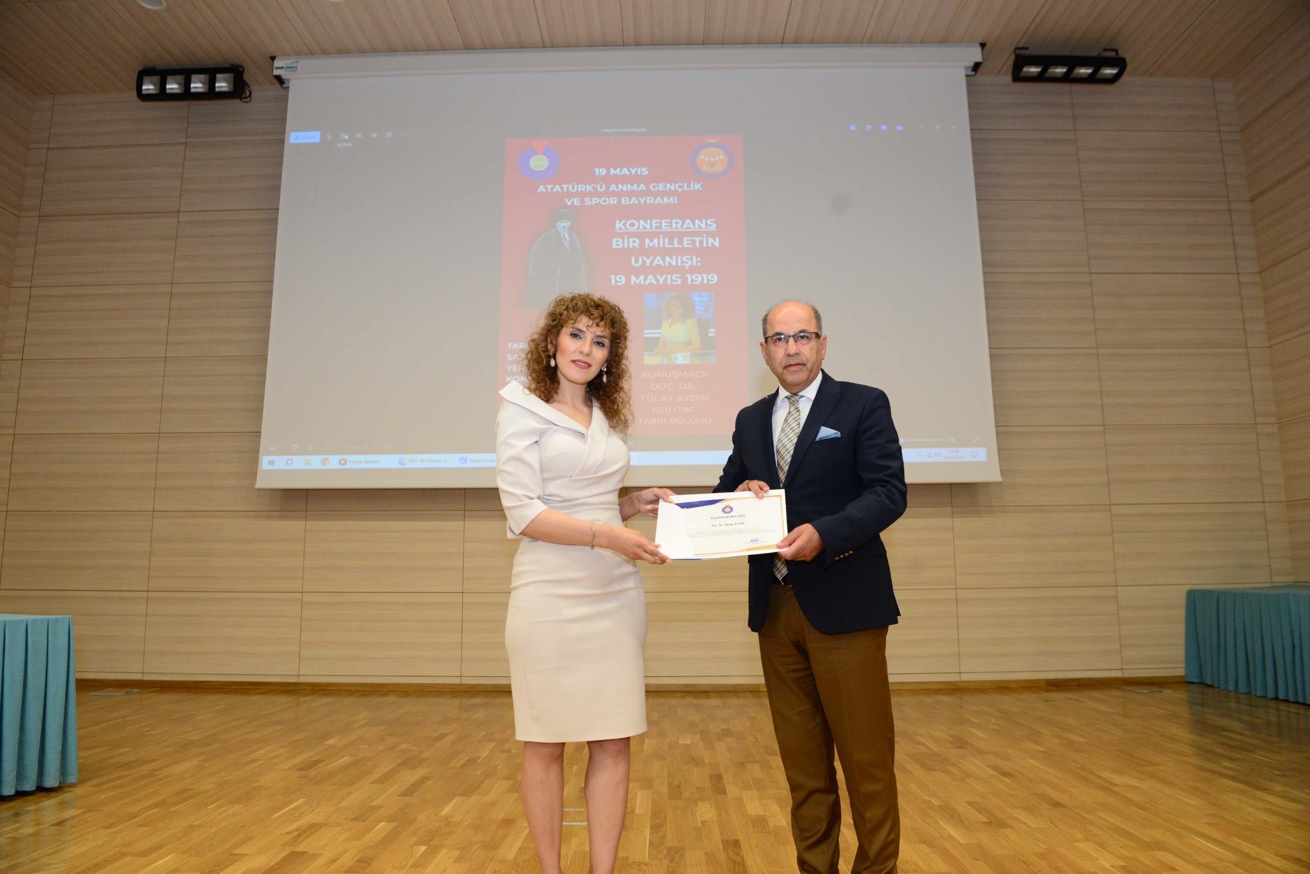Akademik personel ve öğrencilerin yoğun katılım gösterdiği etkinliğin sonunda, Doç. Dr. Tülay AYDIN’a katkılarından dolayı teşekkür belgesi, KSÜ Rektör Yardımcısı Prof. Dr. Orhan DOĞAN tarafından takdim edildi.