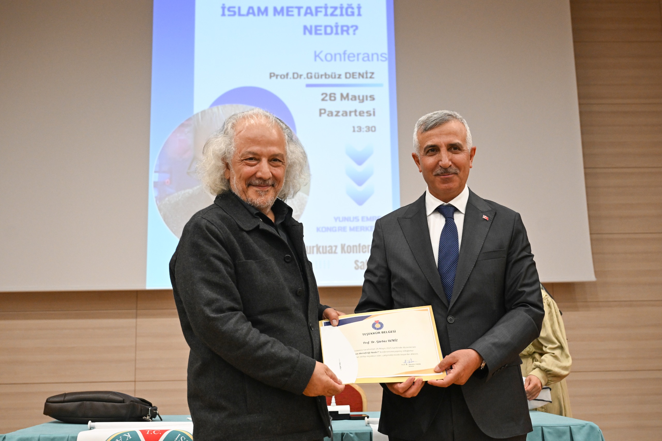 Konferansın sonunda, Kahramanmaraş Valisi Mükerrem Ünlüer ve KSÜ Rektör Yardımcısı Prof. Dr. Nuri Kahveci, Prof. Dr. Gürbüz Deniz’e teşekkür belgesi ve hediye takdiminde bulundu.