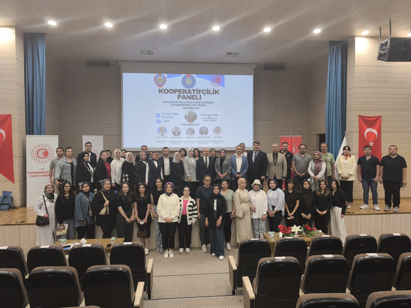 KSÜ İİBF ev sahipliğinde, 29 Mayıs 2025 Perşembe günü "Kamu, Üniversite ve Özel Sektör İş Birliğiyle Kooperatifçilikte Yeni Ufuklar" başlıklı panel düzenlendi.