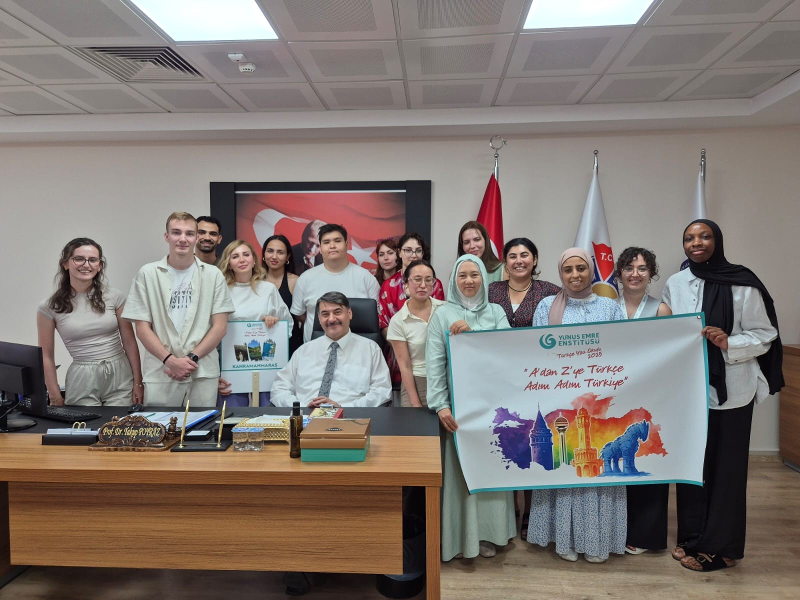 Cumhurbaşkanlığımız Himayesinde Yunus Emre Enstitüsü (YEE) ile Üniversitemiz TÖMER iş birliğinde düzenlenen Yunus Emre Enstitüsü 2025 Yaz Okulu Programı kapsamında farklı ülkelerden gelen uluslararası öğrenciler, Fakültemiz Dekanı Prof. Dr. Yakup Poyraz’ı makamında ziyaret etti.