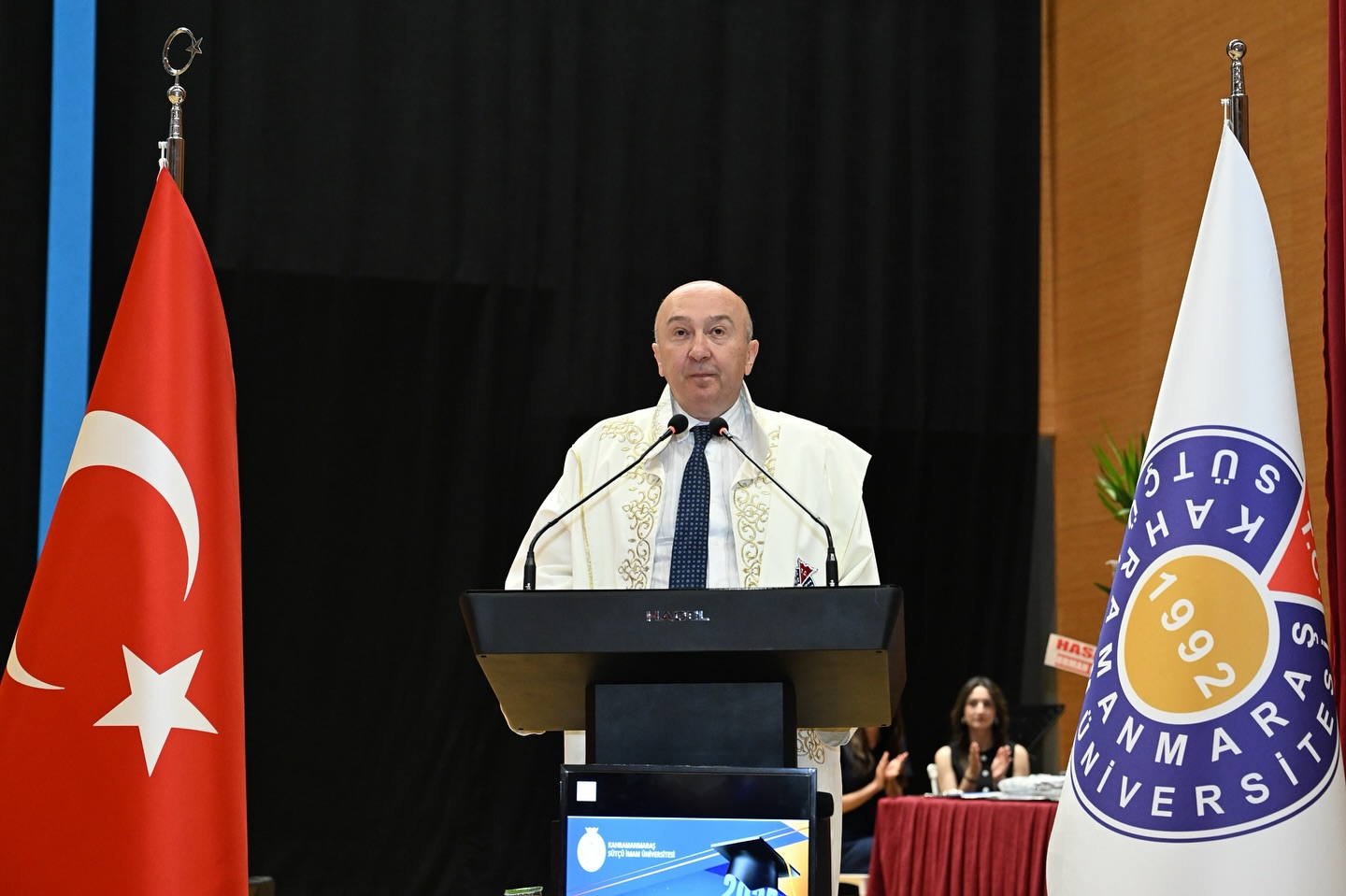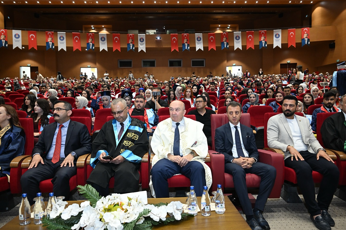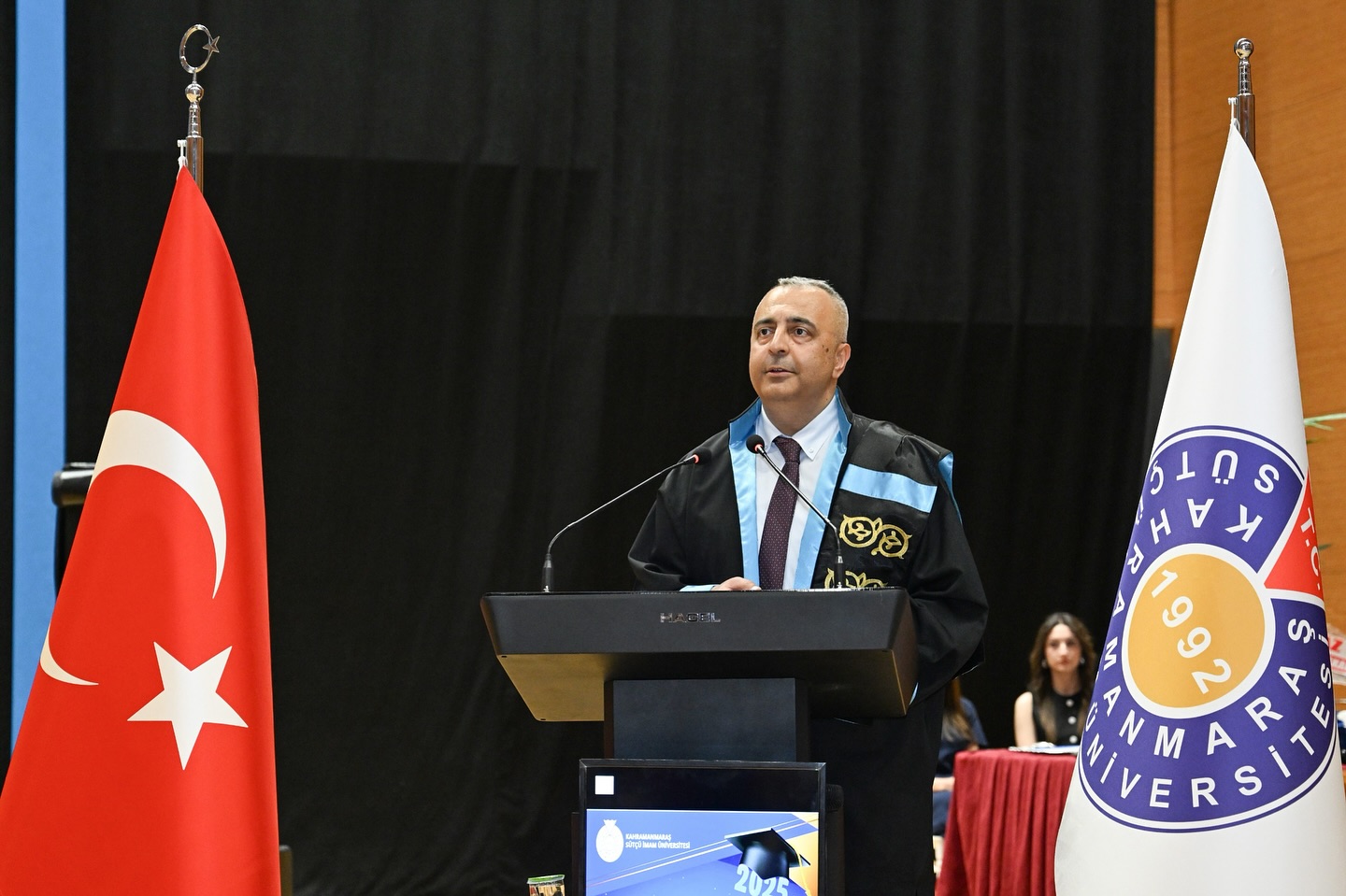 Yunus Emre Kongre ve Kültür Merkezi’nde düzenlenen törene Kahramanmaraş Cumhuriyet Başsavcısı Vekili Habibullah Keser, Kahramanmaraş Sütçü İmam Üniversitesi Rektörü Prof. Dr. Alptekin Yasım, Dulkadiroğlu Kaymakamı Hicabi Aytemur, Dulkadiroğlu Belediye Başkan Vekili Erdoğan Eryılmaz, Rektör Yardımcıları Prof. Dr. İrfan Ersin Akıncı, Prof. Dr. Nuri Kahveci, Prof. Dr. Orhan Doğan, İstiklal Üniversitesi Rektör Yardımcısı Prof. Dr. Burcu Erşahan, İktisadi ve İdari Bilimler Fakültesi Dekanı Prof. Dr. Ali Haluk Pınar, Ticaret İl Müdürü Ahmet Uçar, KMTSO Başkan Vekili Barbaros Sezal, İŞKUR Müdür Vekili Mehmet Arslan, KOSGEB Müdür Vekili Ekrem Gökçe, protokol üyeleri, öğrenciler ve aileleri katıldı.