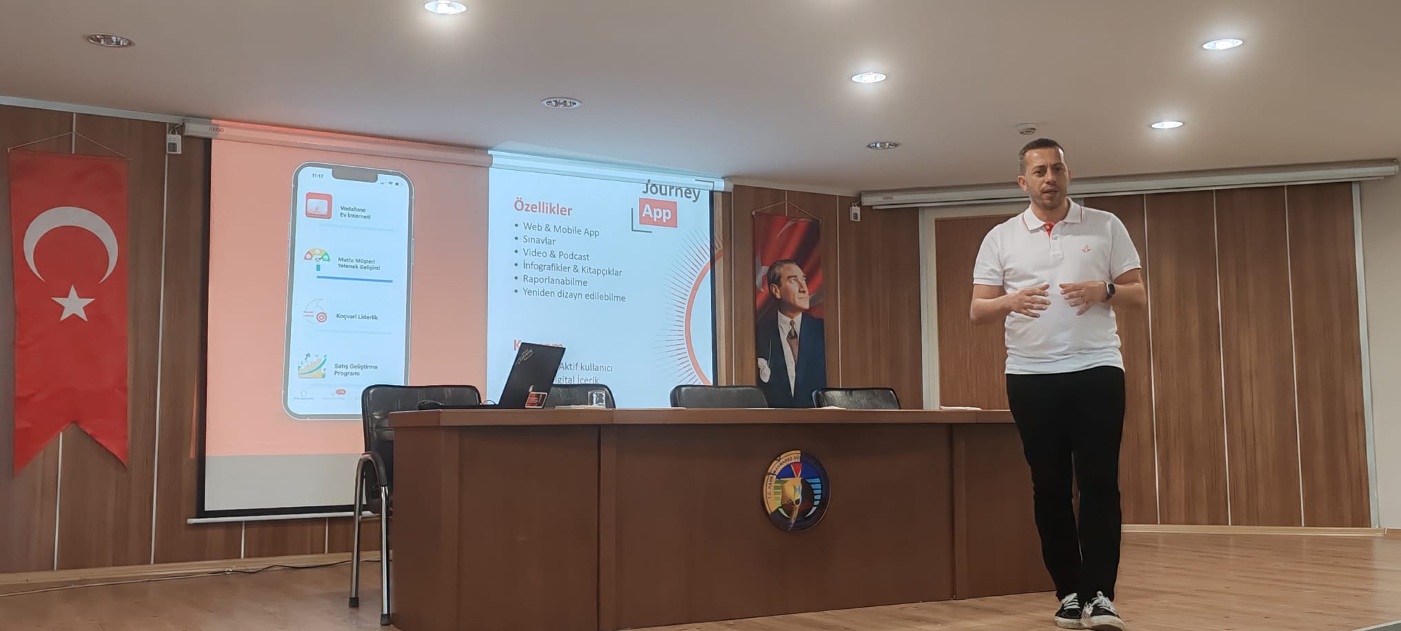 “Vodafone Çağrı Merkezi Hizmetlerinin İşleyişi ve Kariyer Fırsatları” başlıklı konferansa, Vodafone Özelleştirilmiş Ekipler Yöneticisi Sayın Serkan Daloğlu konuşmacı olarak katıldı.