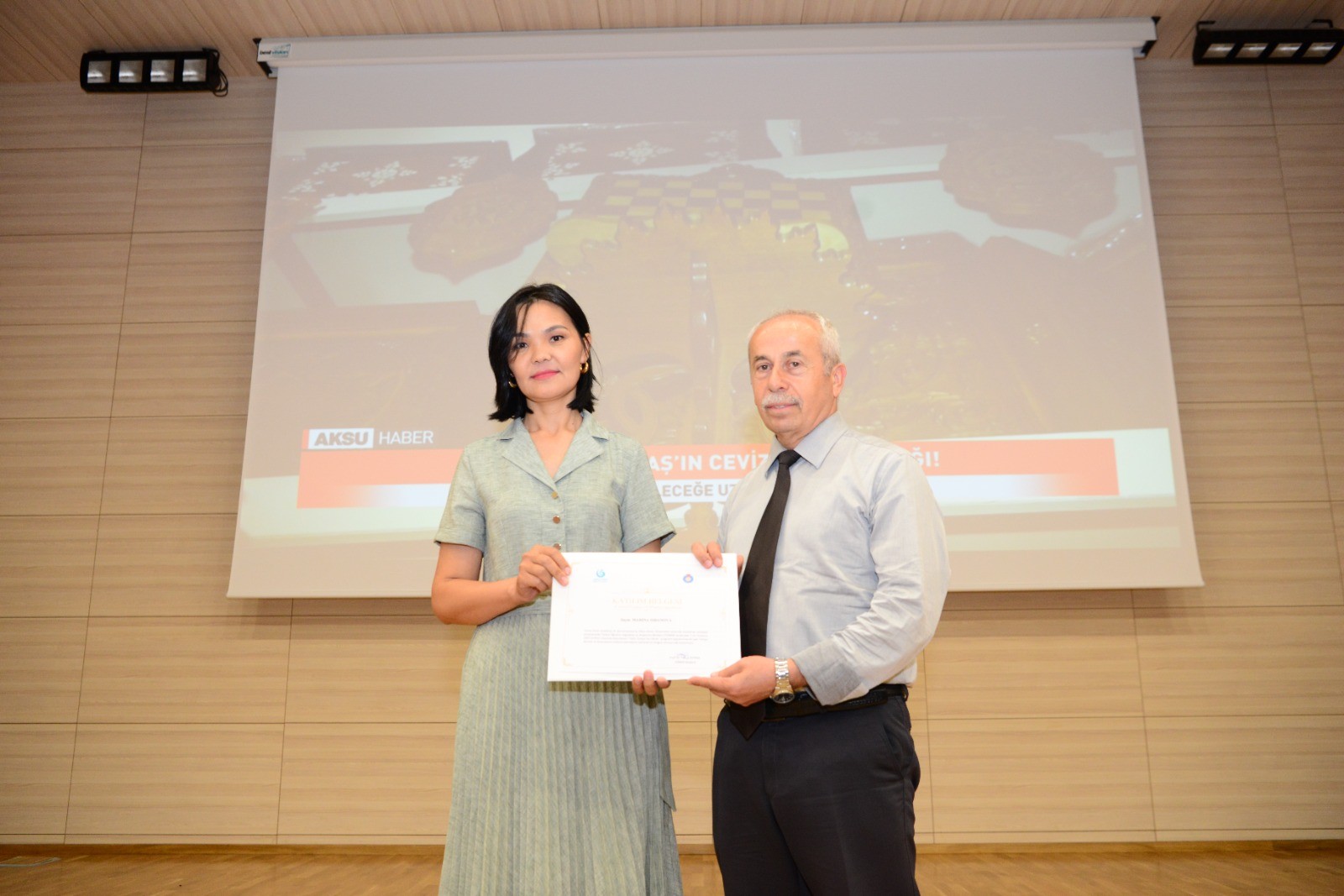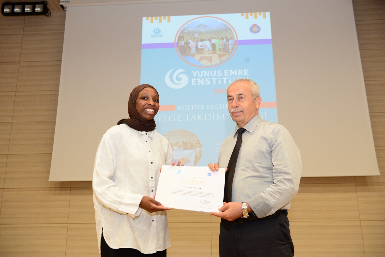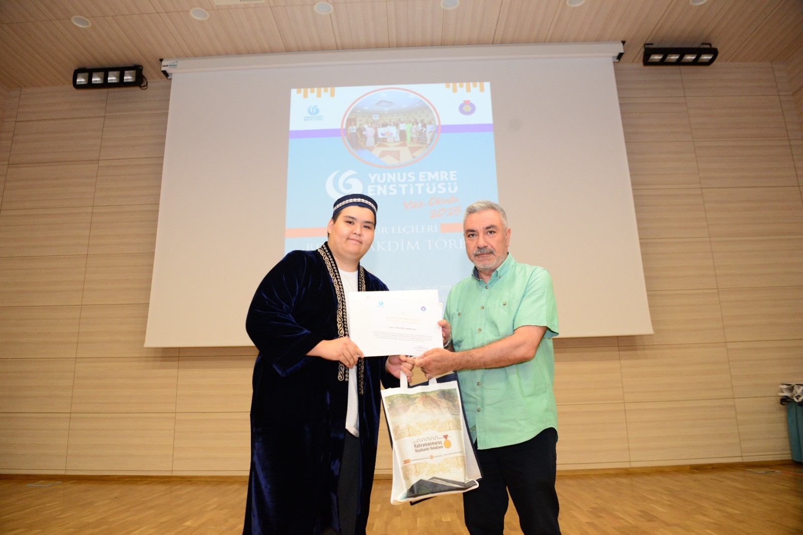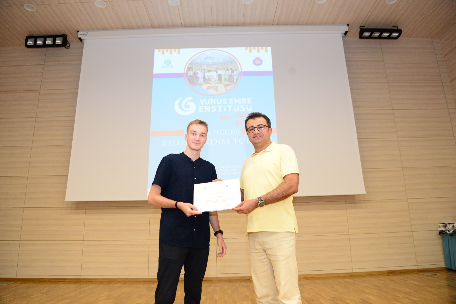 Protokol üyeleri, yaz okulunu başarıyla tamamlayan ülkeden gelen öğrencilere başarı belgelerini ve hatıra hediyelerini takdim etti. Törende ayrıca programa katkı sunan akademisyenlere de armağanlar verildi.