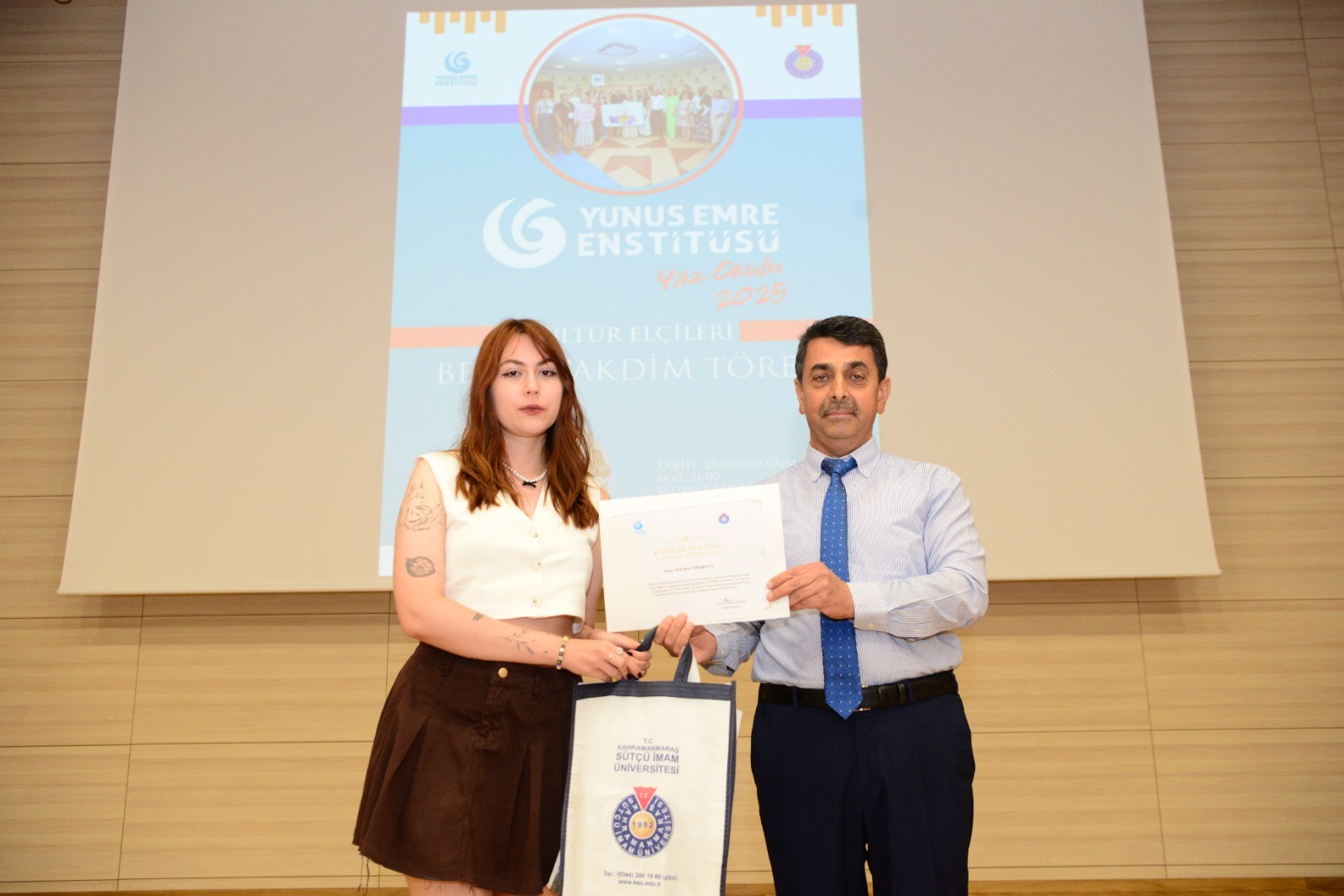 Kahramanmaraş’ta, dünyanın dört bir yanından gelen öğrencilerin katılımıyla gerçekleşen TÖMER Yaz Okulu, anlamlı bir törenle sona erdi. Kahramanmaraş Sütçü İmam Üniversitesi (KSÜ) tarafından düzenlenen ve Yunus Emre Enstitüsü iş birliğiyle yürütülen “2025 Yaz Okulu Katılım Belgesi Takdim Töreni”, renkli ve duygusal anlara sahne oldu.